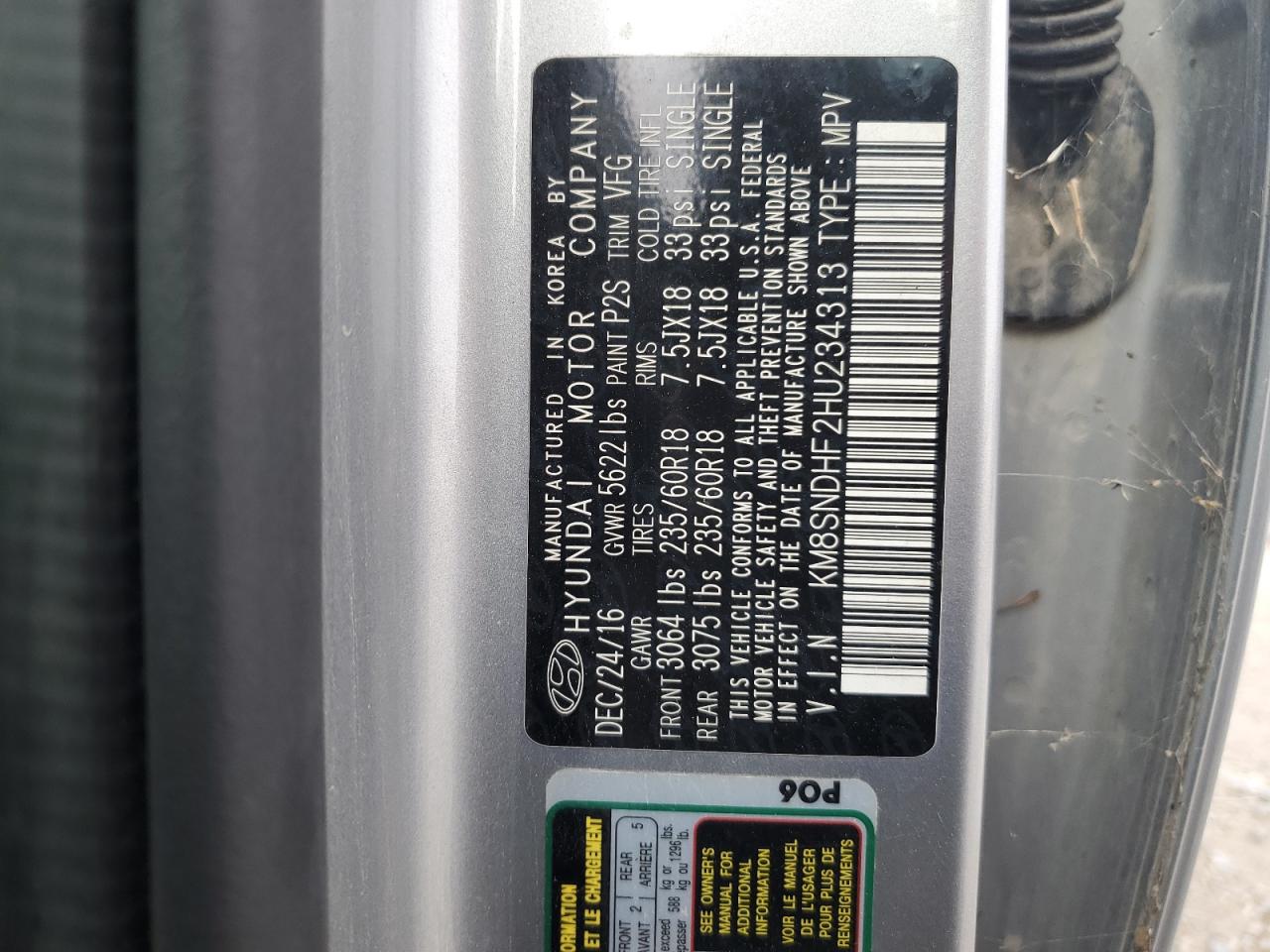 GoodHYUNDAI SANTA FE S 2017. The car is silver in color. The primary damage is minor dents and scratches, with no secondary damage. The car is running and driveable. The wheels and lights appear to be in good condition. The glass appears intact. The interior shows signs of normal wear and tear. The airbags status is unknown.