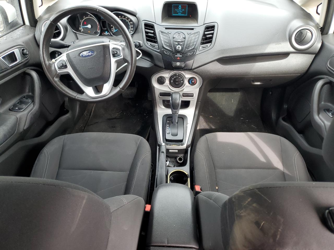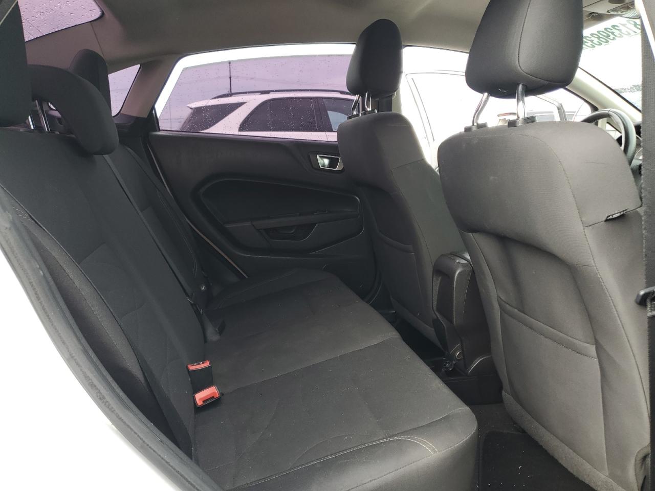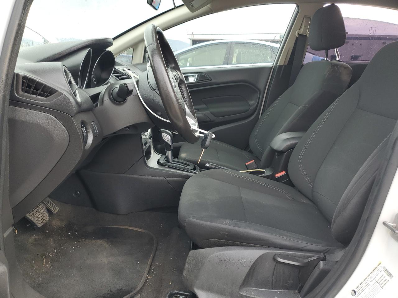 FairThe 2016 FORD FIESTA SE is a white sedan. The front end has significant damage, including missing components, indicating a collision. The rear appears intact. The interior shows some wear and tear but seems generally in good condition. The wheels appear to be intact. Lights and glasses are in good condition. The car starts and drives. The vehicle's body has damage and the overall state is fair, it would require repair.