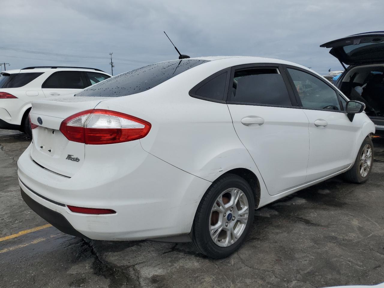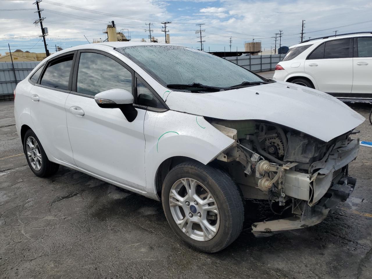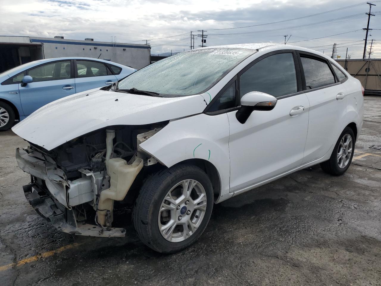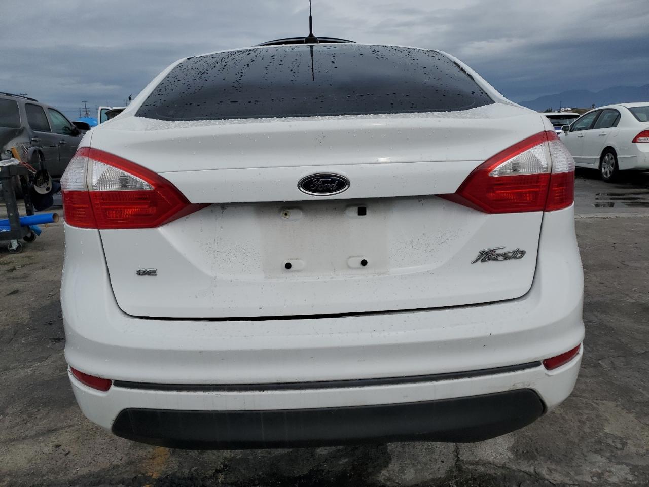 FairThe 2016 FORD FIESTA SE is a white sedan. The front end has significant damage, including missing components, indicating a collision. The rear appears intact. The interior shows some wear and tear but seems generally in good condition. The wheels appear to be intact. Lights and glasses are in good condition. The car starts and drives. The vehicle's body has damage and the overall state is fair, it would require repair.