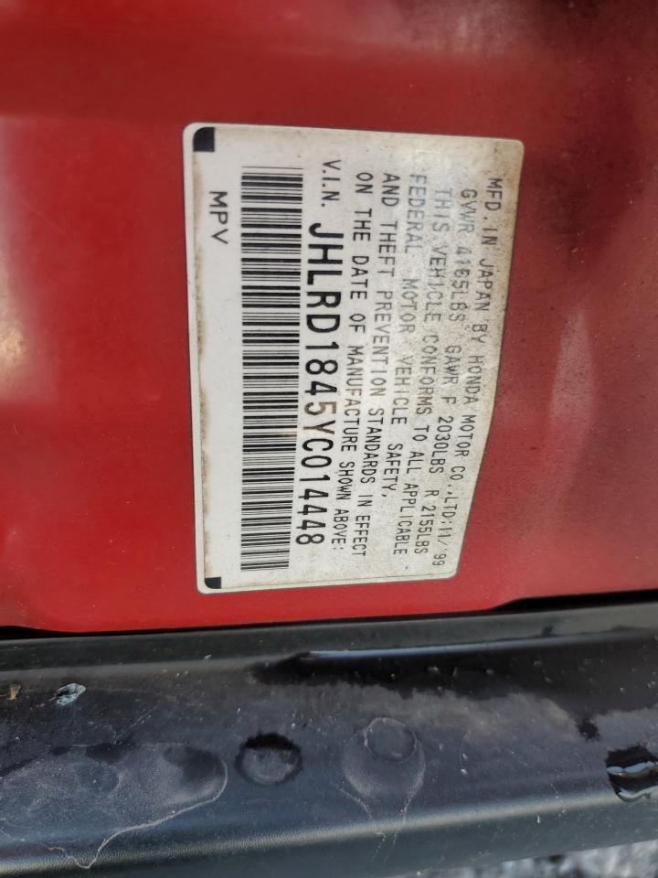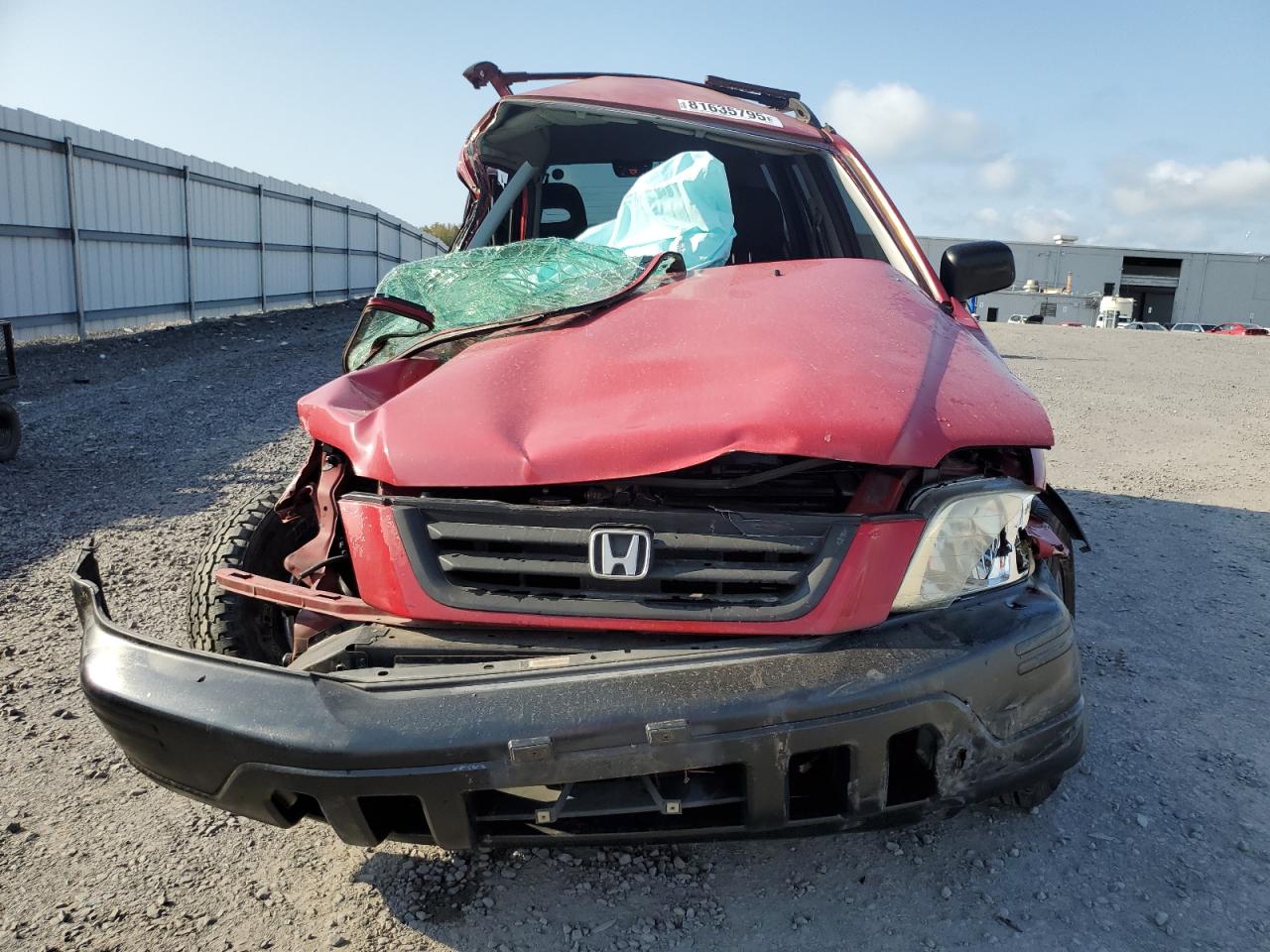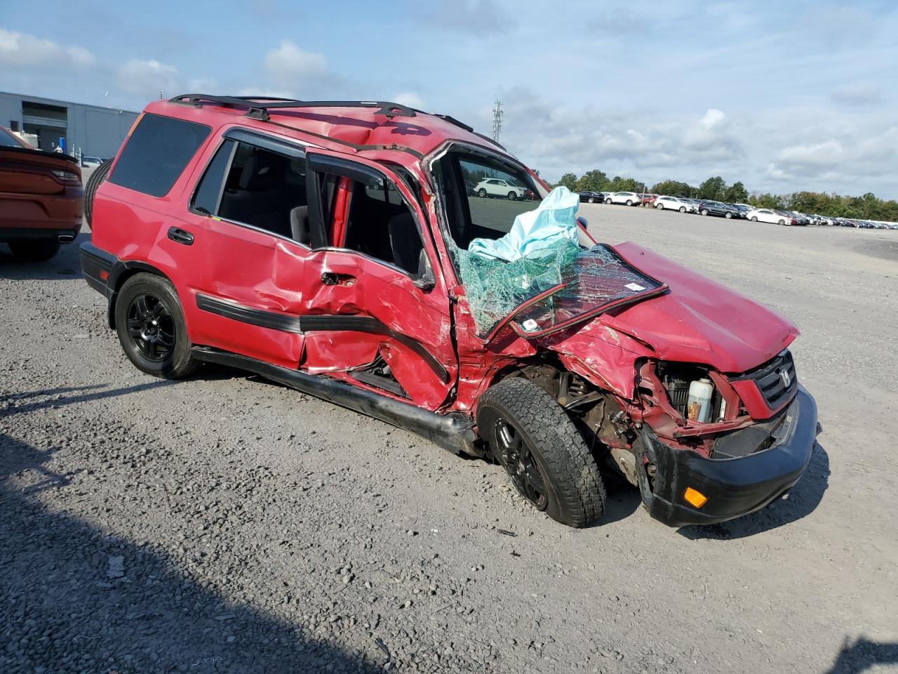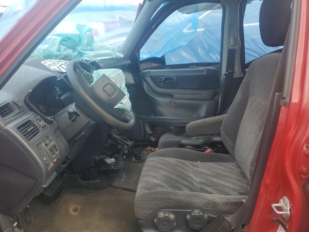 PoorThe red 2000 Honda CR-V LX AUTO shows significant damage, particularly to its body. The airbags have deployed, and the interior has sustained visible damage. The vehicle's exterior condition is poor due to extensive damage, with the frame likely compromised. Wheels and lights appear intact, while the windows are shattered. This car requires considerable repair and is likely not drivable.