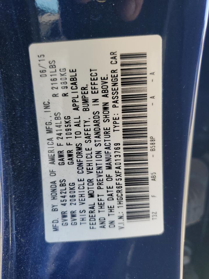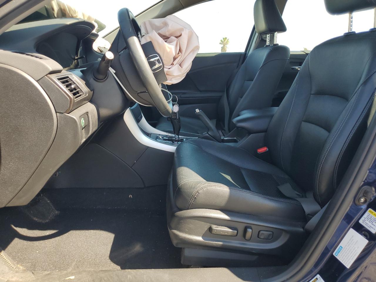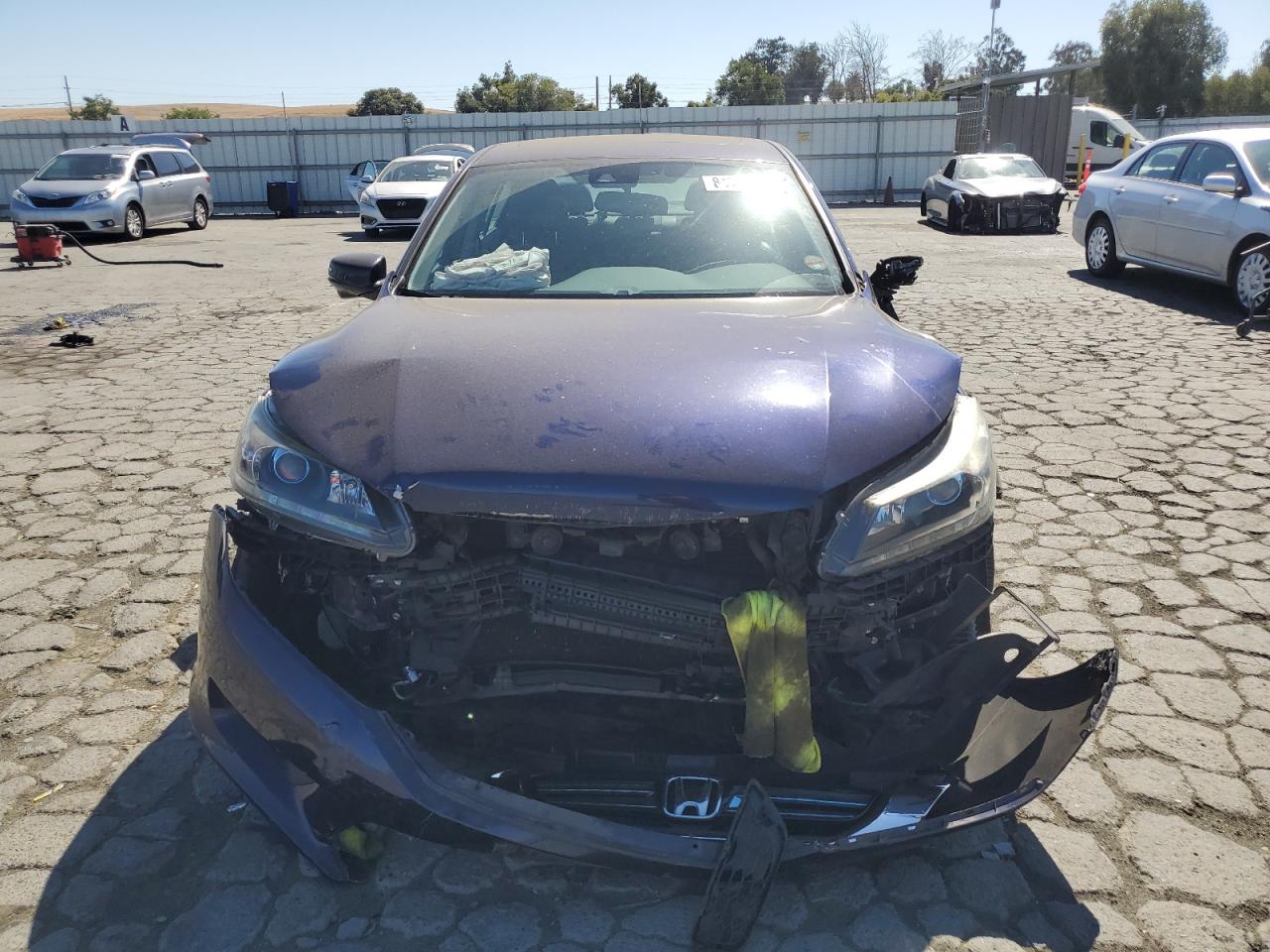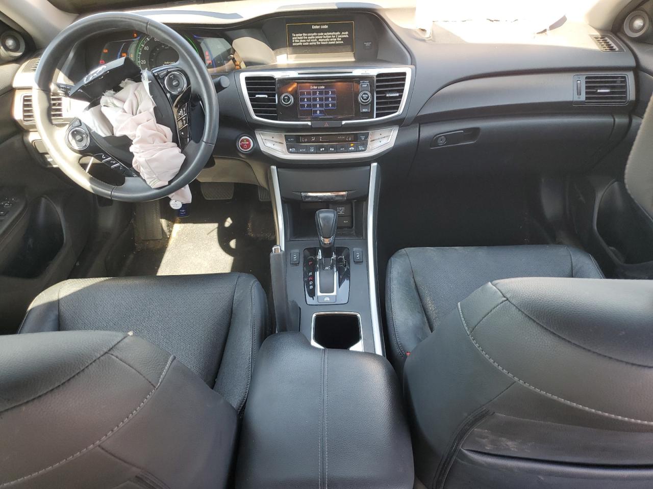FairThis is a damaged 2015 Honda Accord Hybrid. The primary damage is to the front end, with secondary damage to the side. The car is blue. The front end has significant damage, including the bumper, hood, and possibly headlights. The side of the car shows dents and other damage. The wheels appear to be intact. Interior has deployed airbags. The overall state of the vehicle is fair, with moderate visible damage. The vehicle likely requires significant repairs.