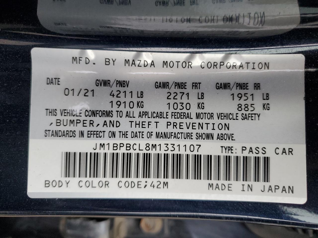 FairThe 2021 MAZDA 3 PREFERRE, blue in color, exhibits significant front-end damage and minor dents/scratches. The front bumper and body panels are severely damaged. The wheels appear intact, and the lights may have damage. The interior shows moderate damage. The car’s overall state is fair, needing repairs. It has a lot of visible damage. Airbags status is not possible to determine from images.