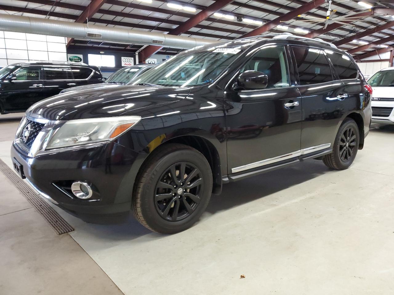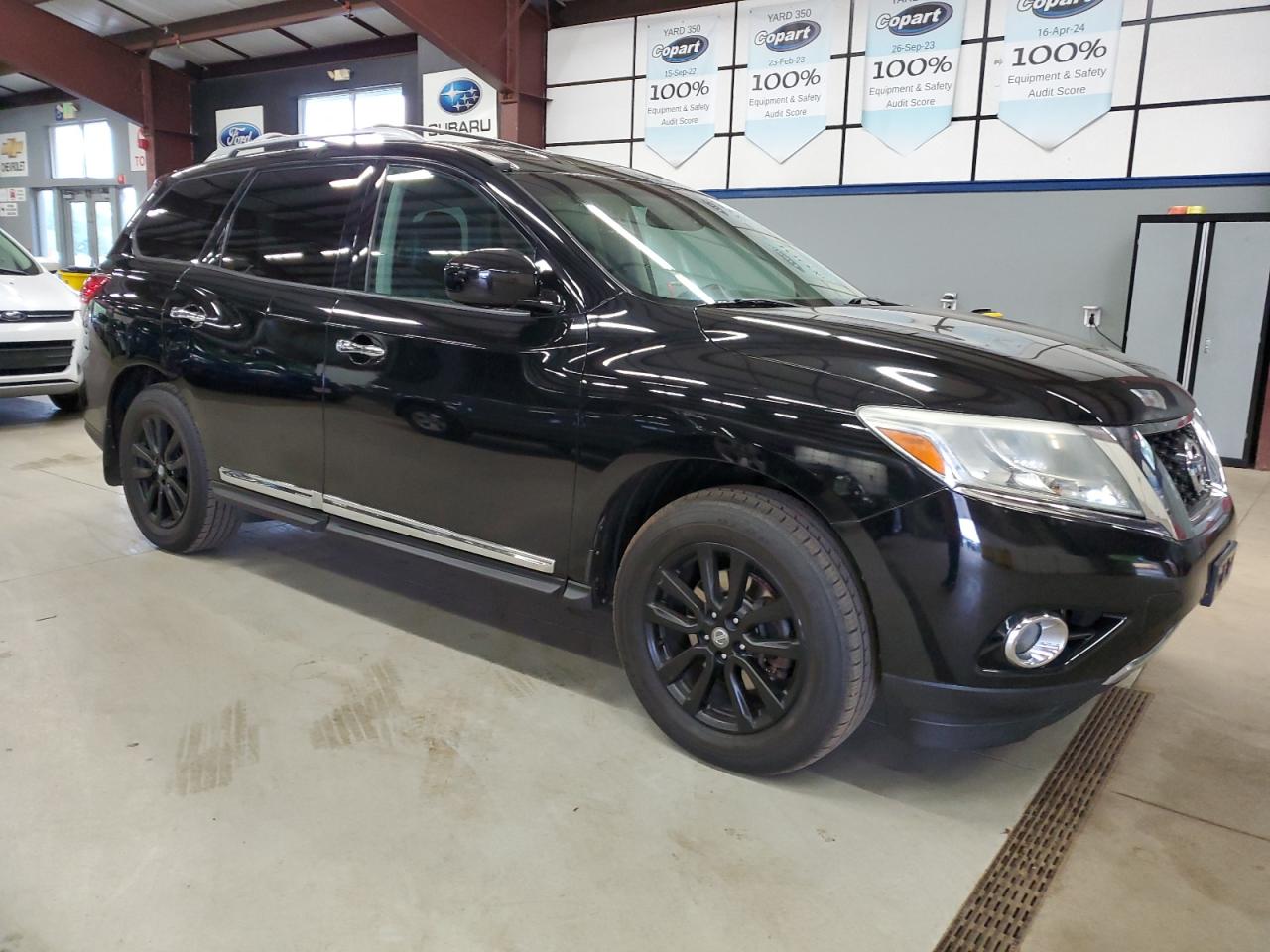GoodThe 2013 Nissan Pathfinder is black and appears to be in drivable condition. The primary damage is to the side, with minor dents and scratches. The wheels appear to be in good condition, and the lights and glasses are intact. The interior shows minor wear and tear, consistent with age and mileage.