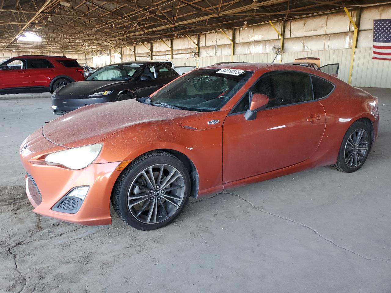 FairThe 2013 Toyota Scion FR-S in a vibrant orange color presents with a few cosmetic concerns. The vehicle displays minor scratches and dents across its body panels, suggesting moderate wear and tear. Mechanically, there are issues with the running components, which impacts drivability. The wheels and glasses appear to be in acceptable condition.