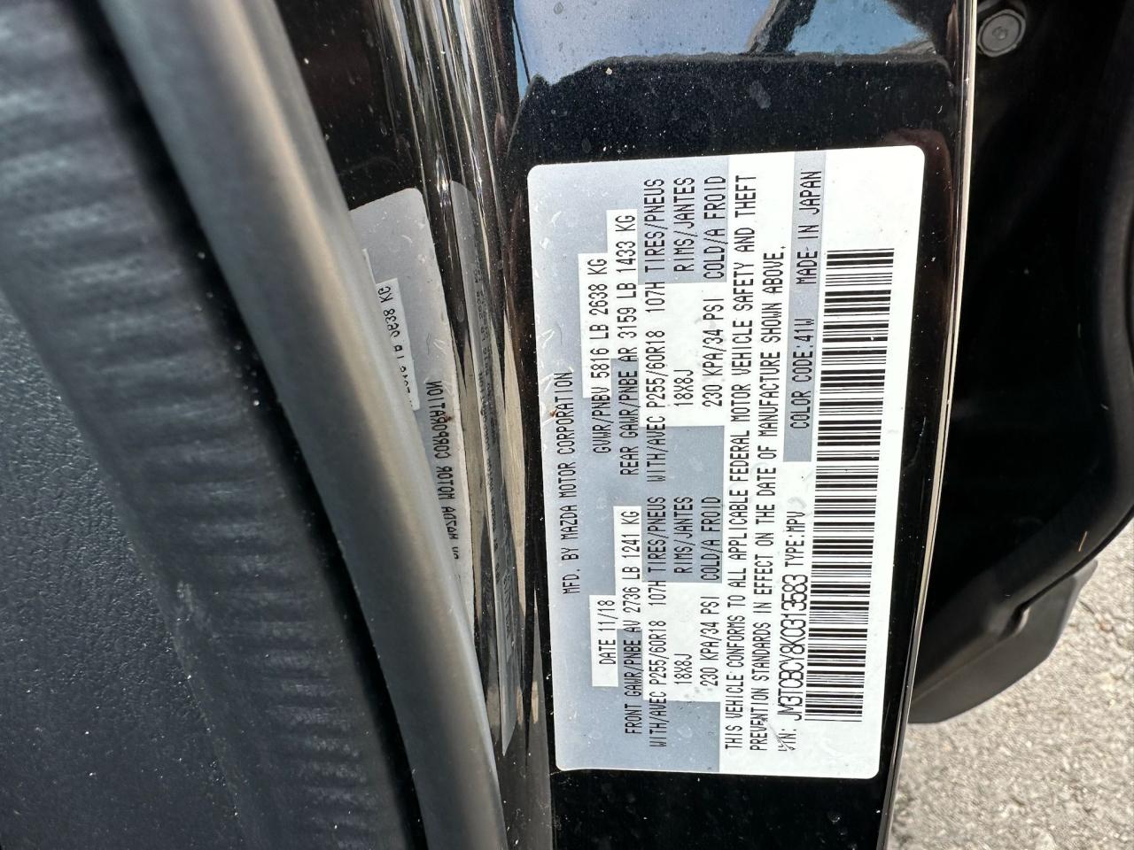 GoodThe 2019 MAZDA CX-9 TOURING in black is available. It has a Run & Drive Verified status and a Vehicle Damage Category of Body. The overall condition is considered to be Good with some Minor Dent/Scratches.