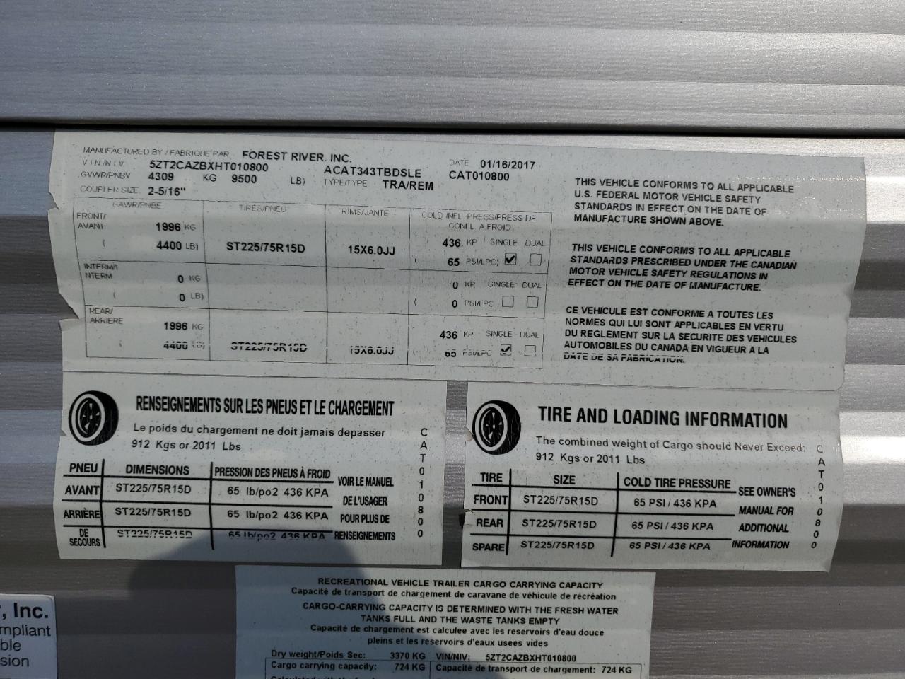 FairThis is a gray Coachmen Catalina 2017 with primary hail damage and secondary rear end damage. The car's condition suggests moderate visible damage, affecting both the exterior and potentially the interior. The vehicle is drivable but likely requires repairs.