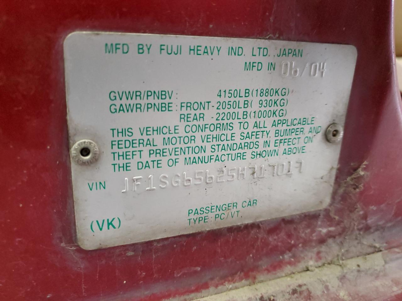 JF1SG65625H717017Oferta Końcowa