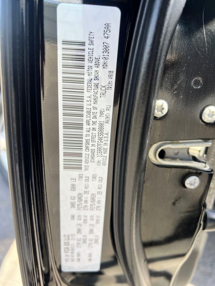 Good2019 RAM 1500 CLASS, black color with RUN & DRIVE VERIFIED. The car exhibits minor dent/scratches, with a DAMAGE HISTORY. The vehicle's exterior shows some wear and tear, consistent with its age. The wheels, lights, and glasses appear to be in good condition. Interior condition seems to be in a normal state, but more pictures are needed to assess thoroughly. This truck seems drivable, and the condition of the body suggests only cosmetic or body-related damage.