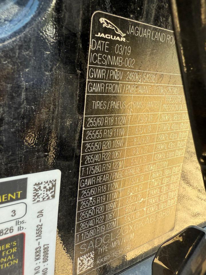 FairThe 2019 Jaguar F-PACE R, black in color, exhibits primary water/flood damage with secondary mechanical issues. The vehicle's exterior shows moderate visible damage, with the wheels appearing intact, while the interior shows some wear. The overall condition of the car is poor, and will require considerable repair.