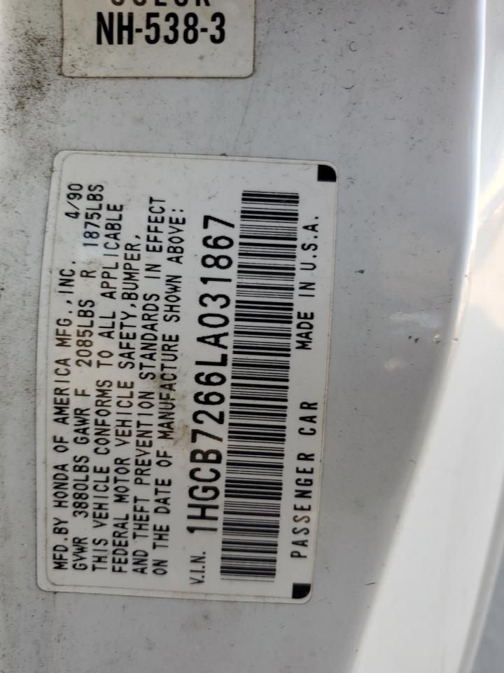 FairThis is a 1990 Honda Accord EX, white in color, with a DEFAULT start code. The primary damage is front-end damage with a history of damage. The car's condition is poor, indicating significant damage.
