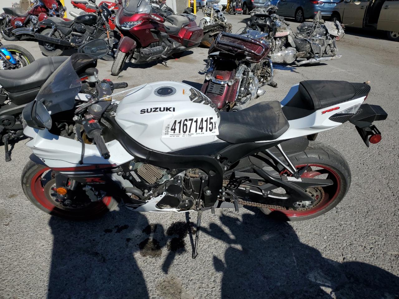 FairThe white SUZUKI GSX-R750 2024, exhibits damage primarily to its side. The motorcycle appears to be drivable, despite the body panel damage. The lights and glasses seem intact. Interior condition shows minimal wear. The airbag status is unknown. The motorcycle is suitable for repair.