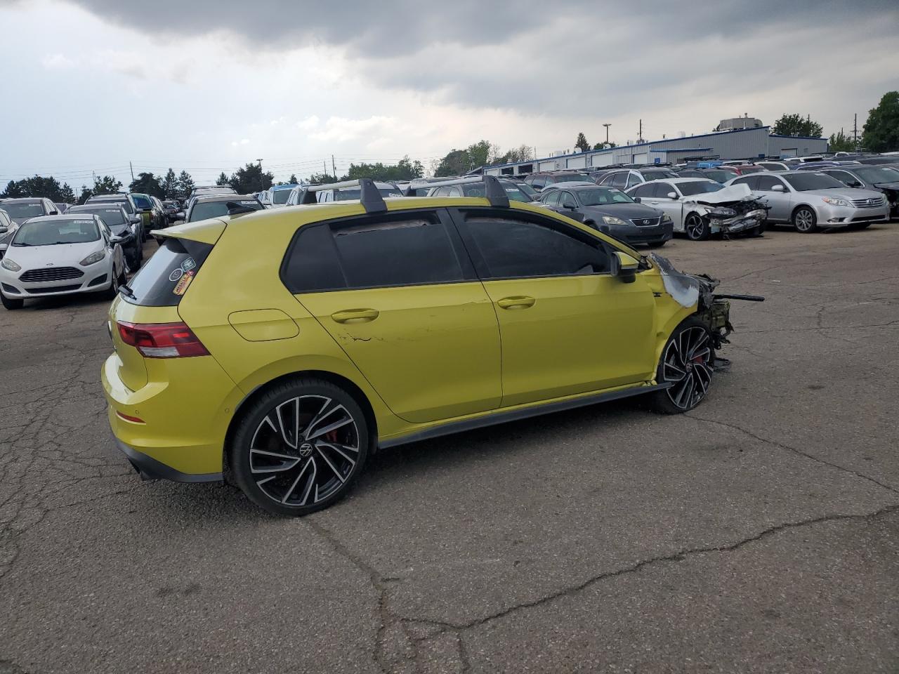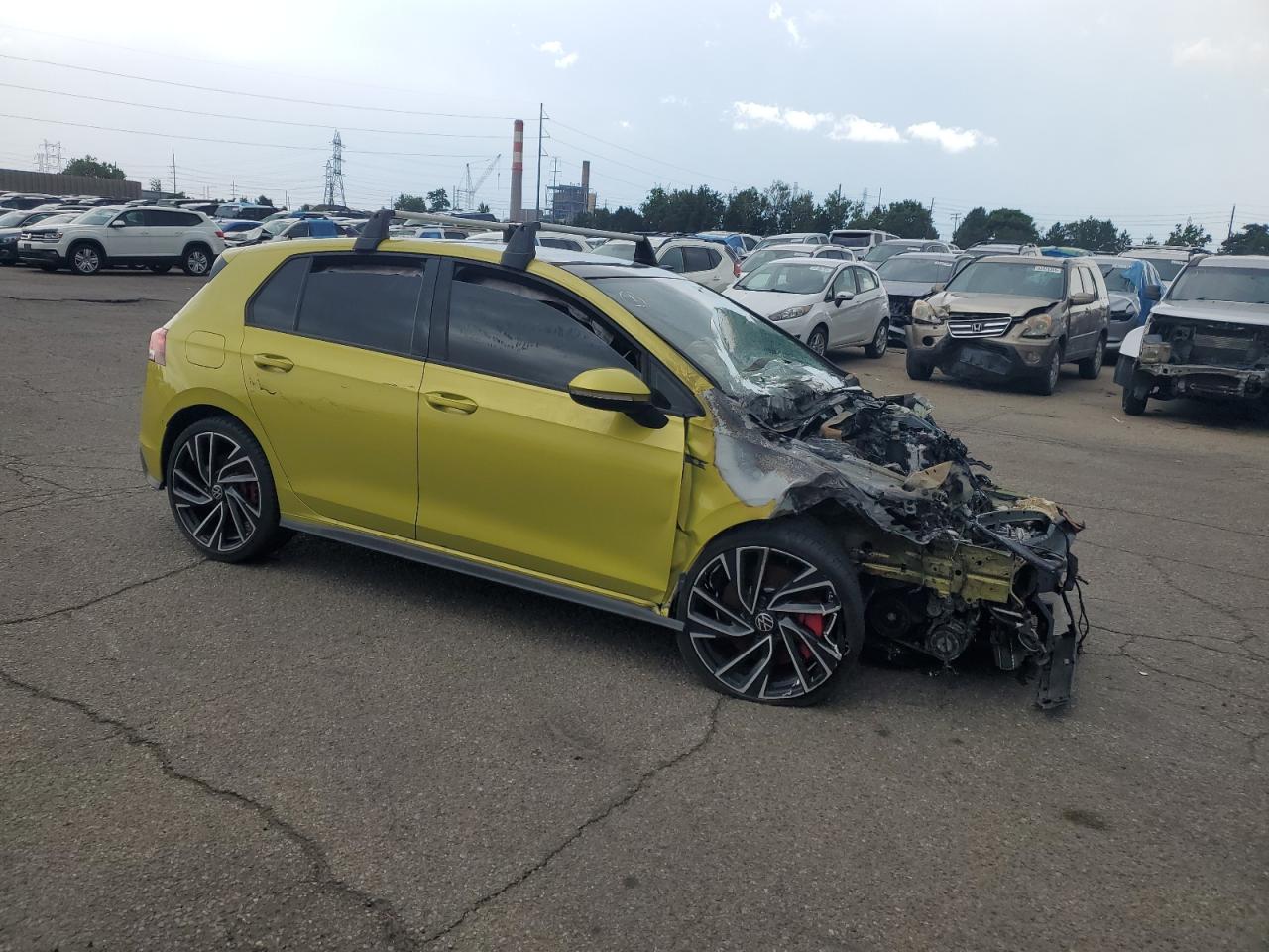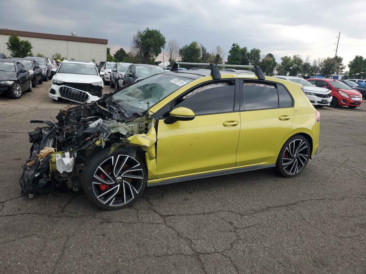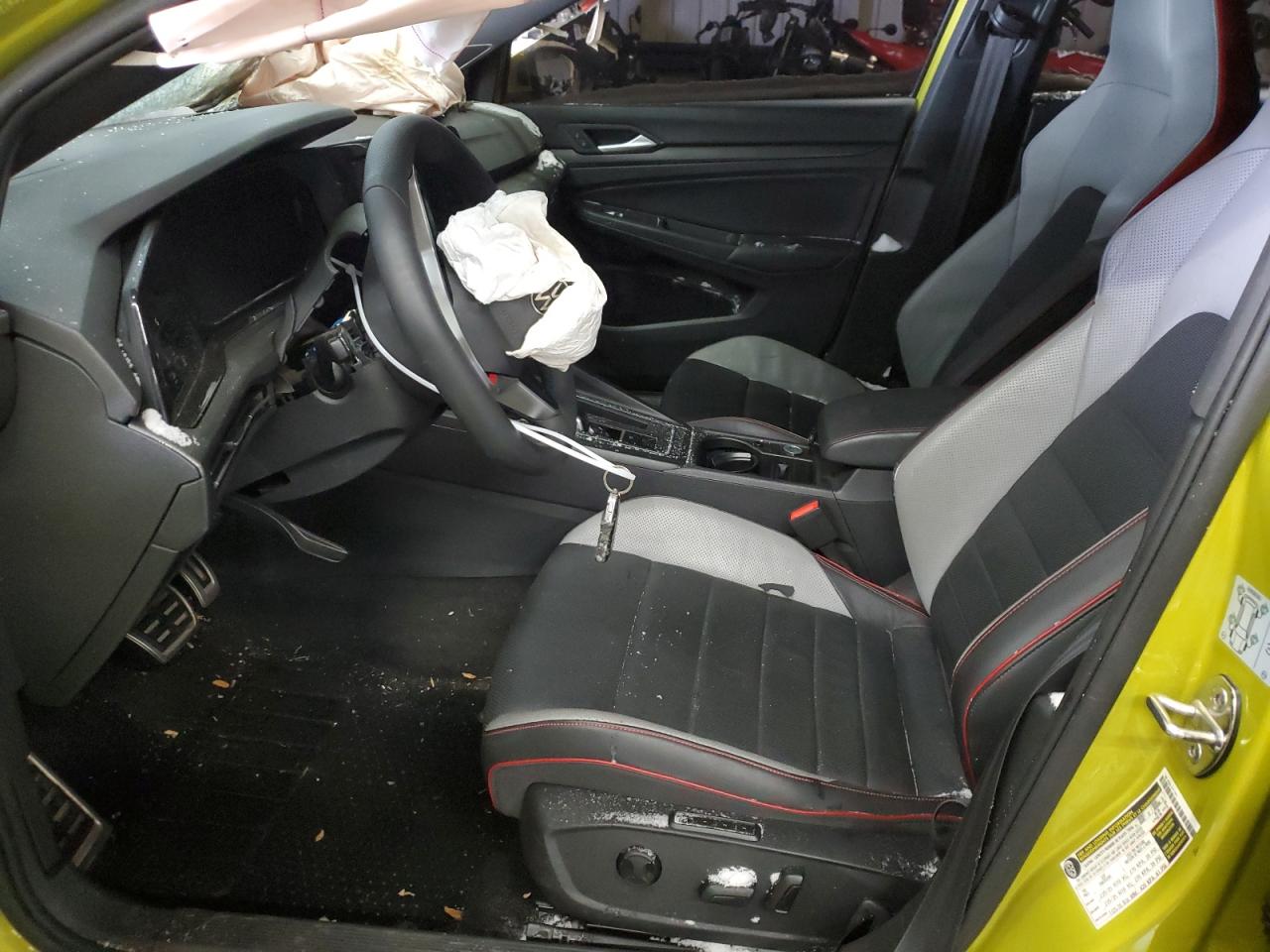 PoorThe 2022 Volkswagen GTI Autobahn, a sporty hatchback, presents significant damage. The front end is severely damaged, with substantial impact visible. The car's color is green. Interior damage is present. Airbags deployed.