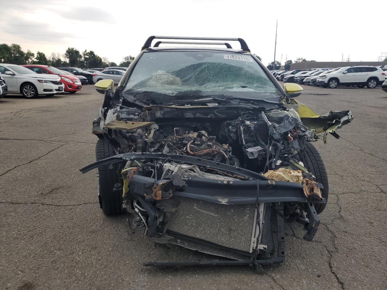 The front of the vehicle has sustained severe impact damage. The body panels are heavily damaged, and the front end is extensively compromised. Interior damage is also visible, including deployed airbags and damage to the dashboard and steering wheel.