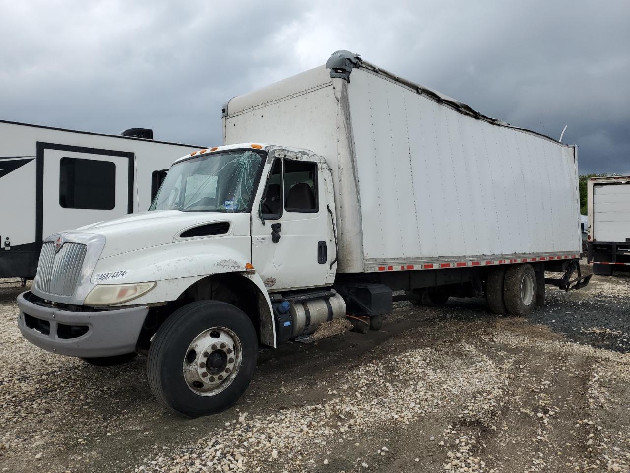 FairThis is a white INTERNATIONAL 4000 4300 2017 truck, displaying moderate body damage. The exterior shows signs of wear and tear, and the interior has visible damage. The vehicle appears drivable but may require repairs. The wheels and lights seem to be intact. The glasses has no visible damage. Summary: The truck has moderate visible body damage, indicating a 'Body' damage category. The overall condition is 'Fair'. Keywords: Damaged INTERNATIONAL truck, body damage, white truck, drivable condition, exterior damage, interior damage.