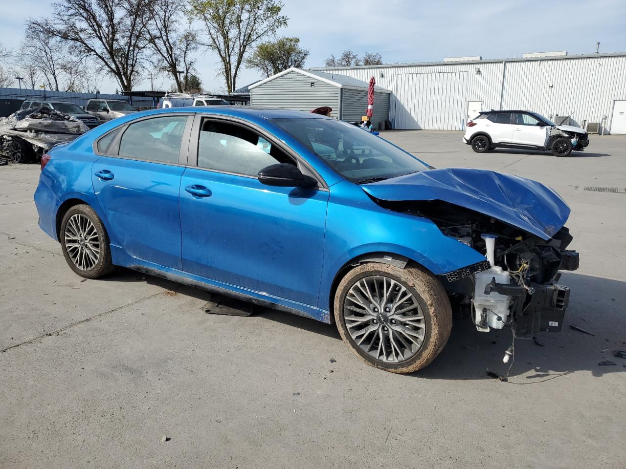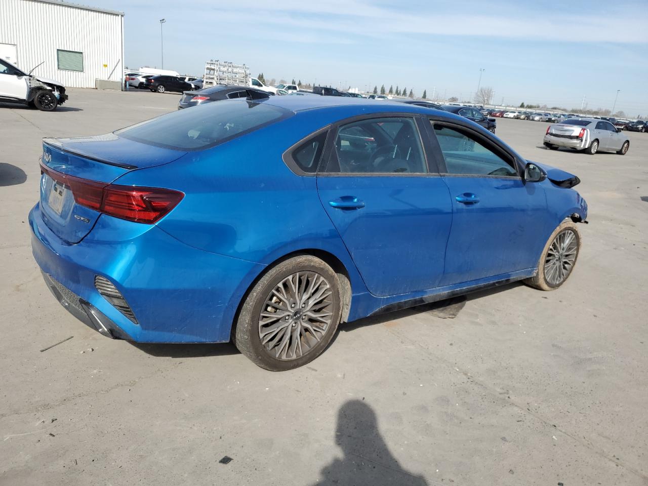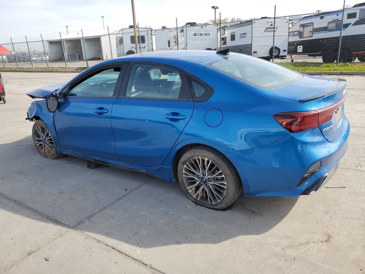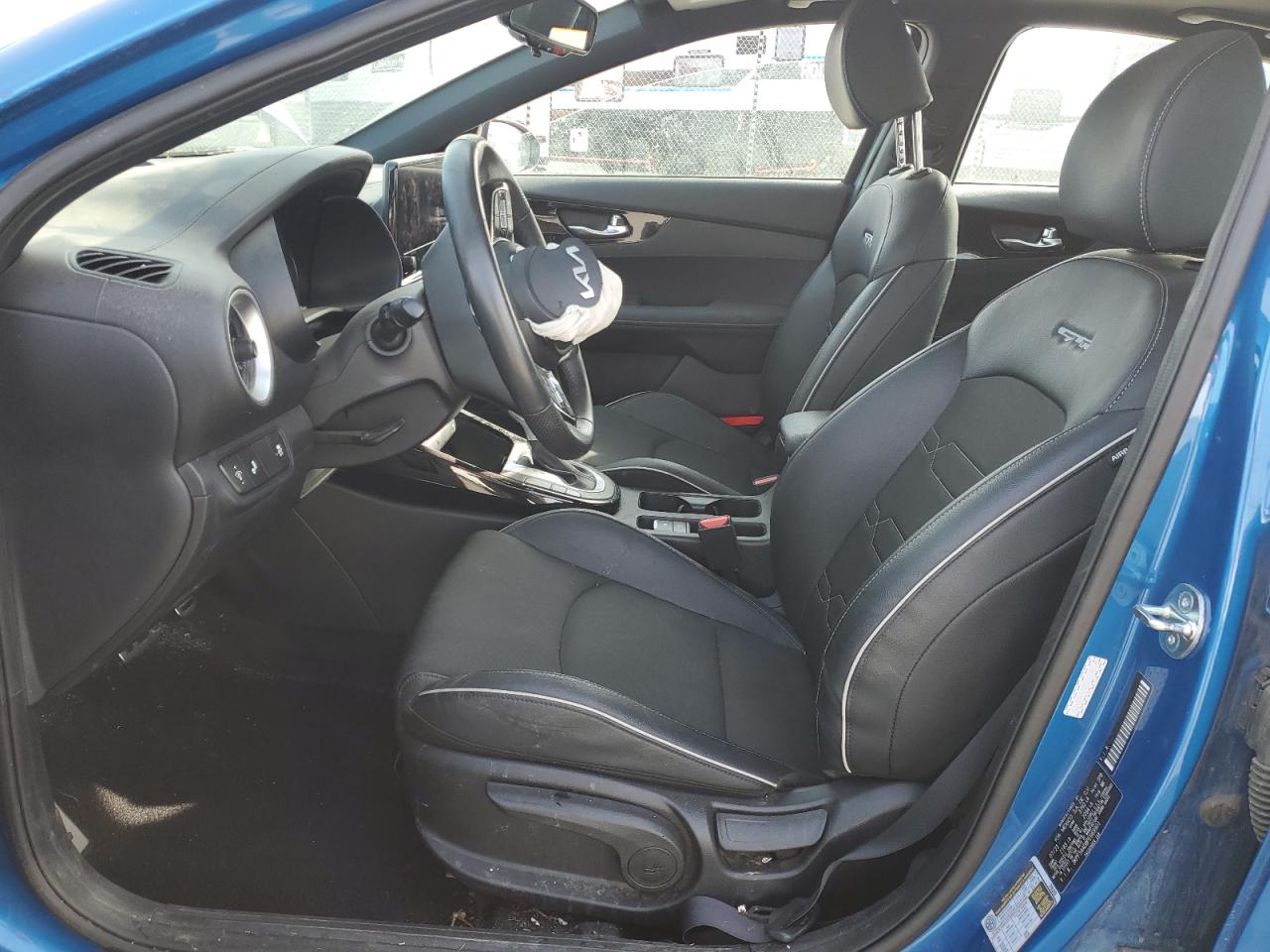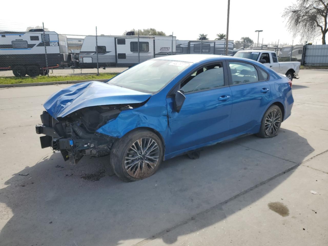 FairThe 2023 KIA FORTE GT-LINE is a blue sedan with significant front-end damage. The front bumper, hood, and fenders are heavily damaged. The interior appears to be in good condition, with some airbag deployment visible. The wheels seem intact. The vehicle's damage is primarily concentrated in the front, but the car is likely still drivable. Summary: This KIA FORTE GT-LINE is in "Fair" condition overall, with "Body" damage. There's considerable front-end damage including the front and front-end damage in a body, but interior and wheels seem mostly ok. The car may be drivable after repair. The interior condition is "Good".
