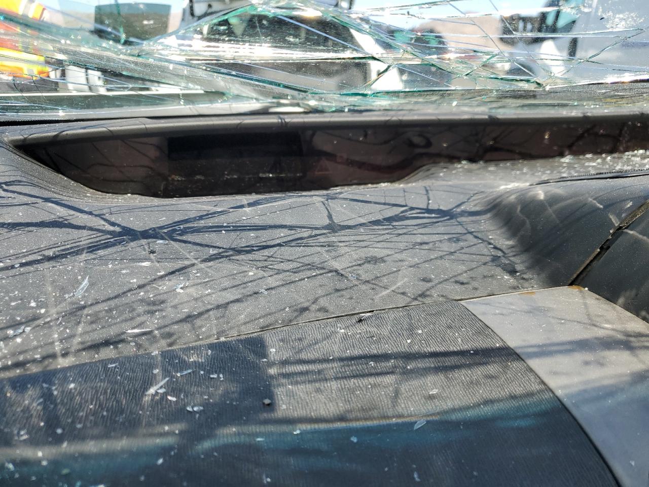 Crushed front end, broken windshield, rear-end damage, damaged roof, significant structural issues, potential interior damage.
