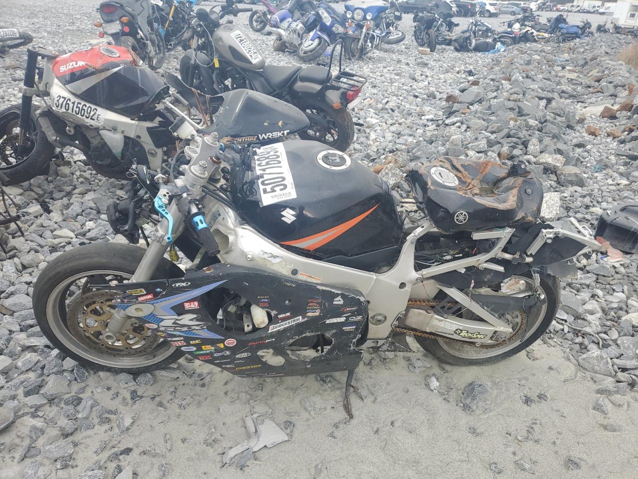 FairThe images show several heavily damaged SUZUKI GSX-R750 1999 motorcycles. The primary damage appears to be stripped, with extensive body damage. The motorcycles are two-tone and show signs of significant impact and wear.
