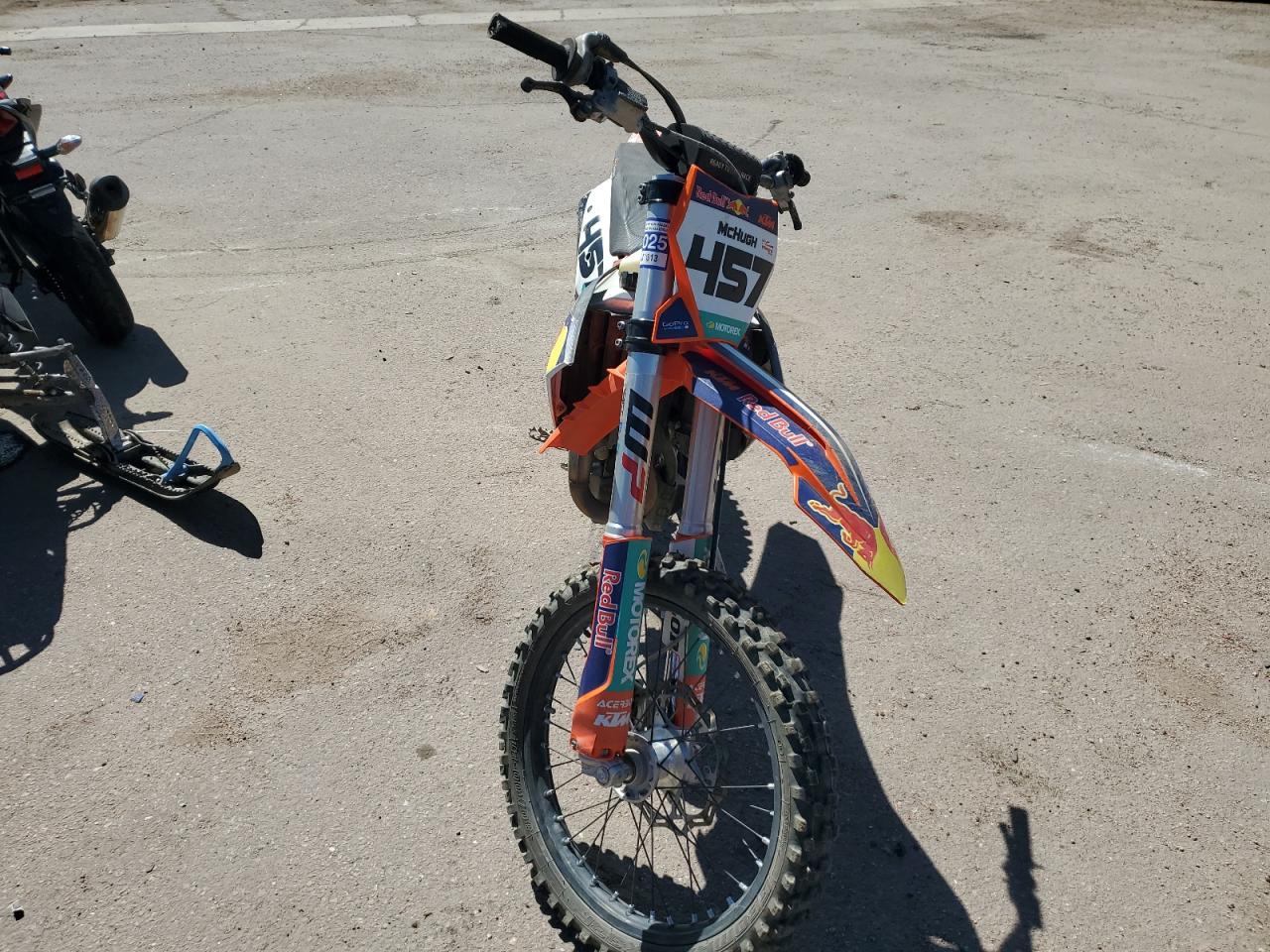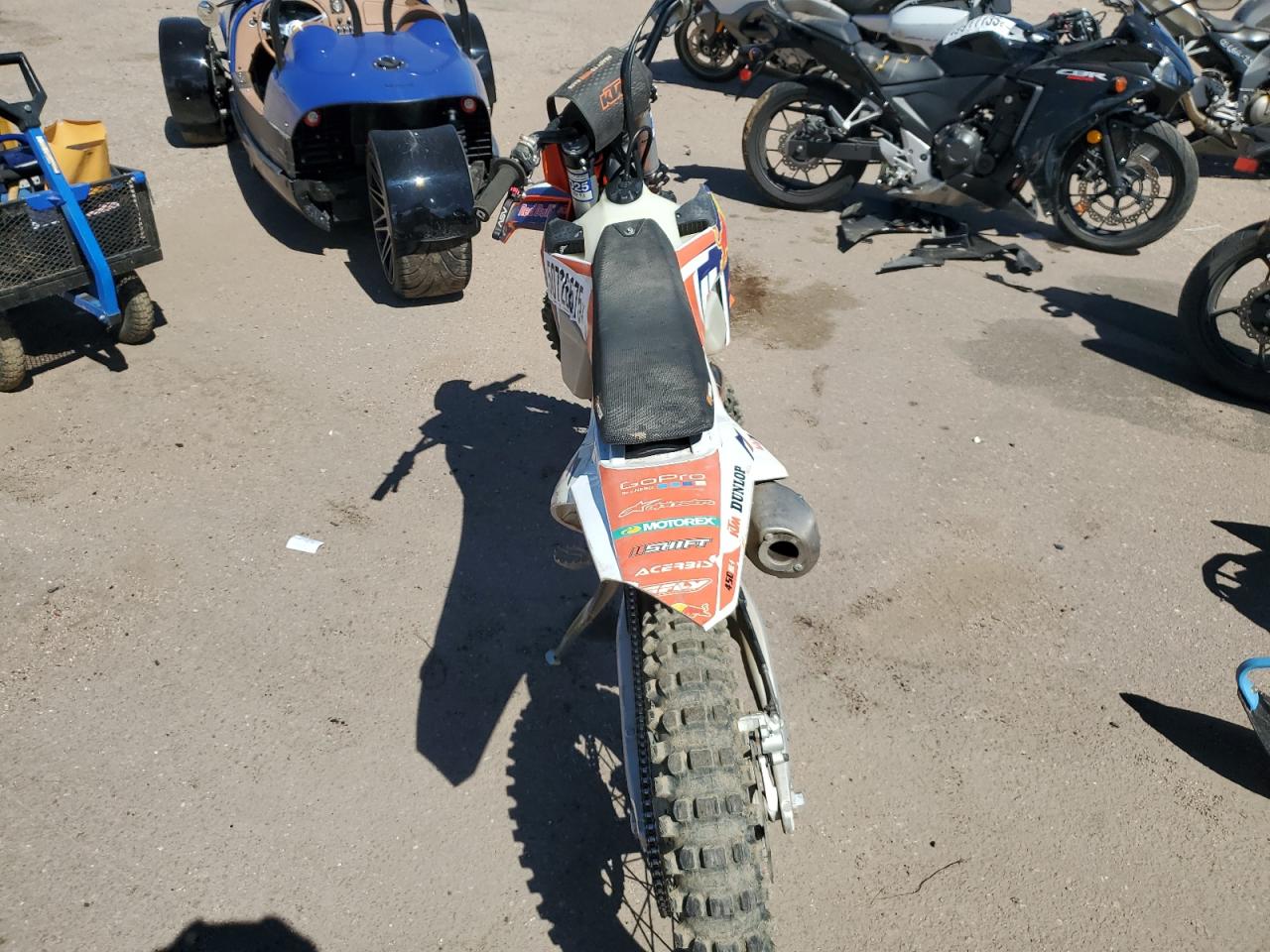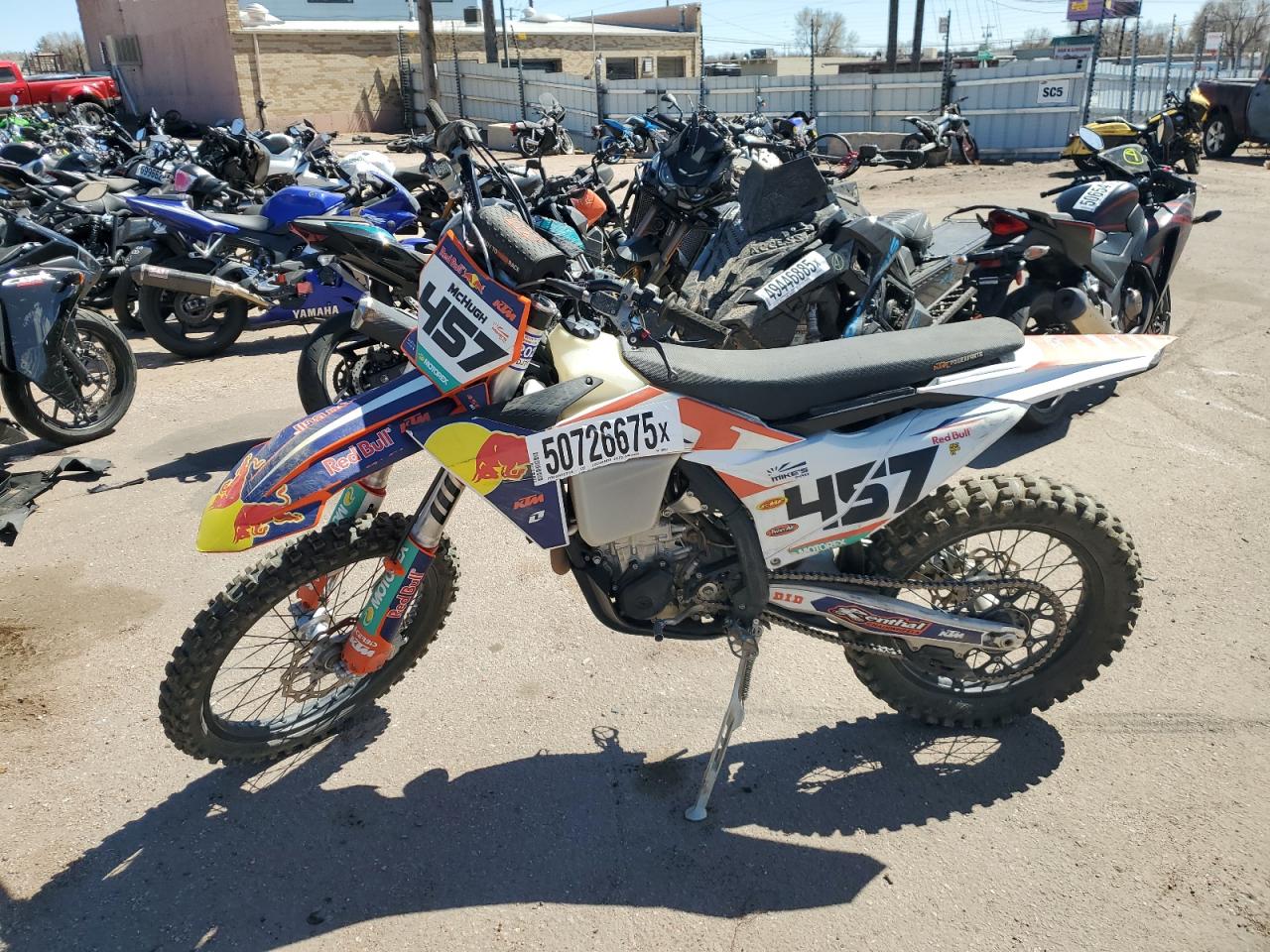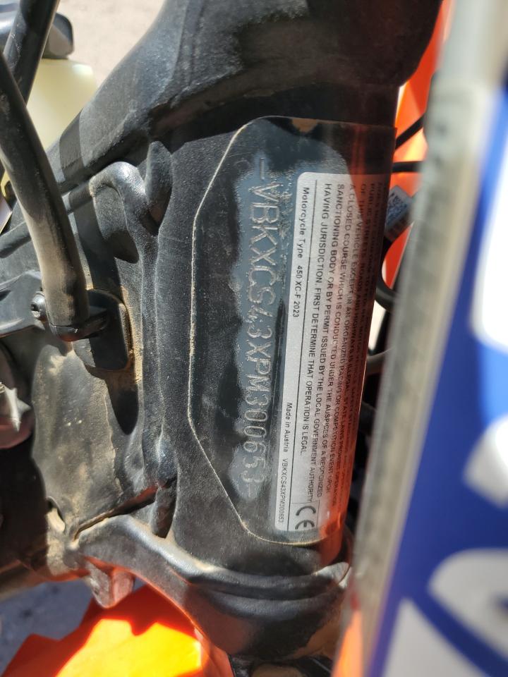 GoodThe 2023 KTM 450 XC-F appears to have primarily cosmetic damage, with body panel damage. The motorcycle is white and has a "Run & Drive Verified" start code. The wheels, lights, and glasses appear to be intact. The vehicle's overall condition is good, with the exterior exhibiting minor to moderate damage. There is no evidence of airbag deployment or interior damage. The motorcycle is drivable.
