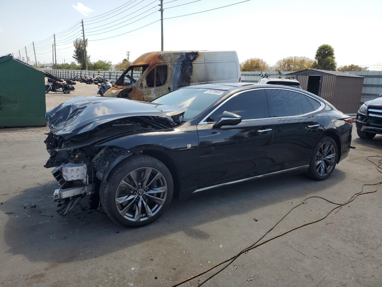 FairThis is a 2018 Lexus LS 500 with significant front-end damage. The primary damage is to the front end, while there is no secondary damage. The car is black and has a 'Run & Drive Verified' start code. The wheels appear to be intact. Interior damage is present, airbags have been deployed. The car appears drivable despite the significant front-end damage.