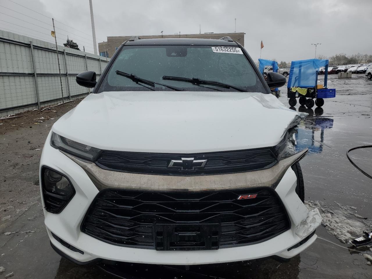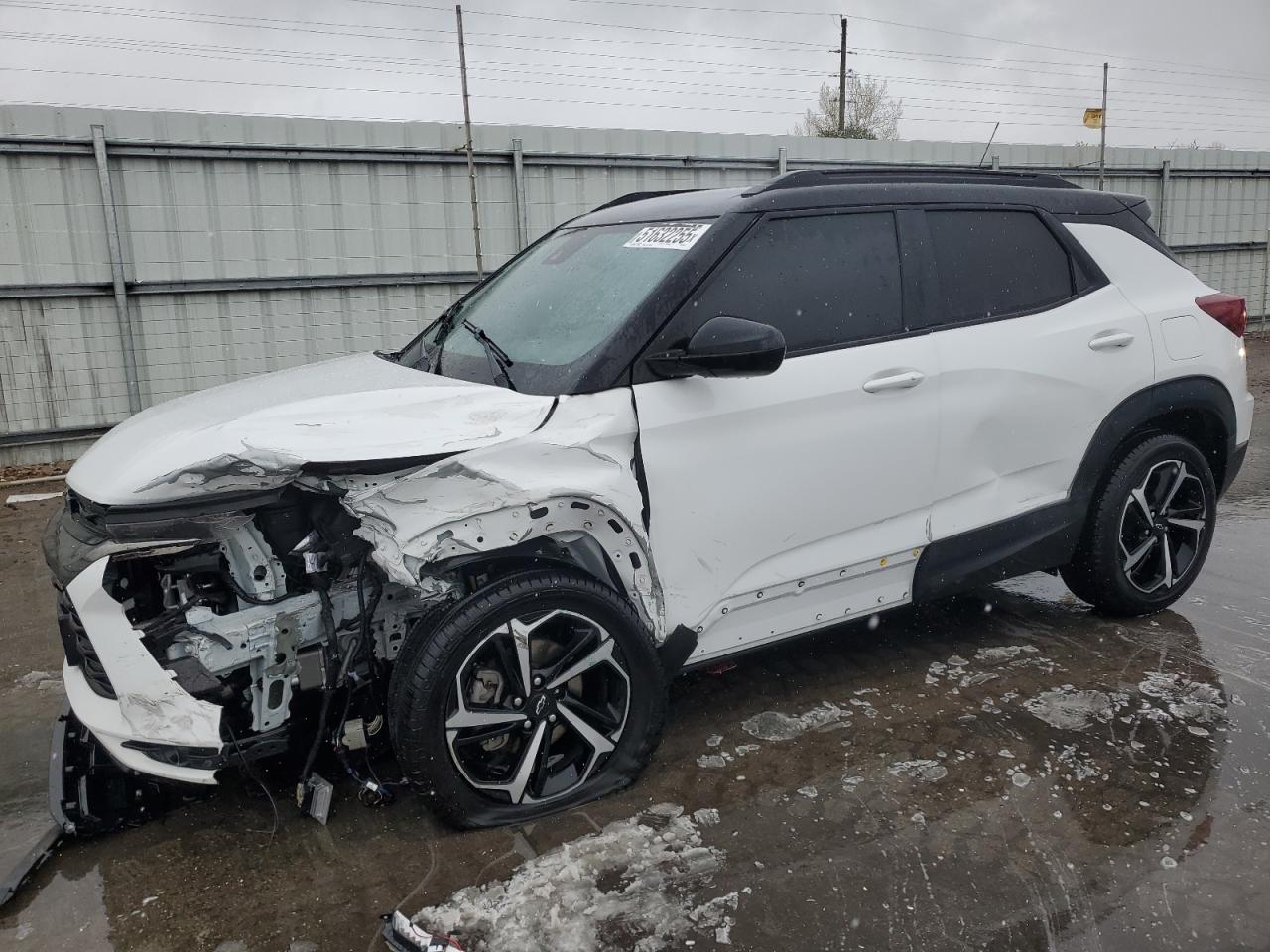 FairThis is a white 2021 Chevrolet Trailblazer that has sustained significant damage. The primary damage is to the front end, with secondary damage to the side. The front end is heavily damaged, with the bumper, hood, and front quarter panel severely affected. The side of the vehicle also shows damage, indicating a possible impact. The wheels appear to be intact, but the front lights are likely damaged. The glass seems to be in good condition, though it's hard to be certain given the extent of the body damage. The interior shows signs of damage as well. Based on the images, the car has a moderate level of damage overall. The airbags status can not be confirmed without specific inspection.