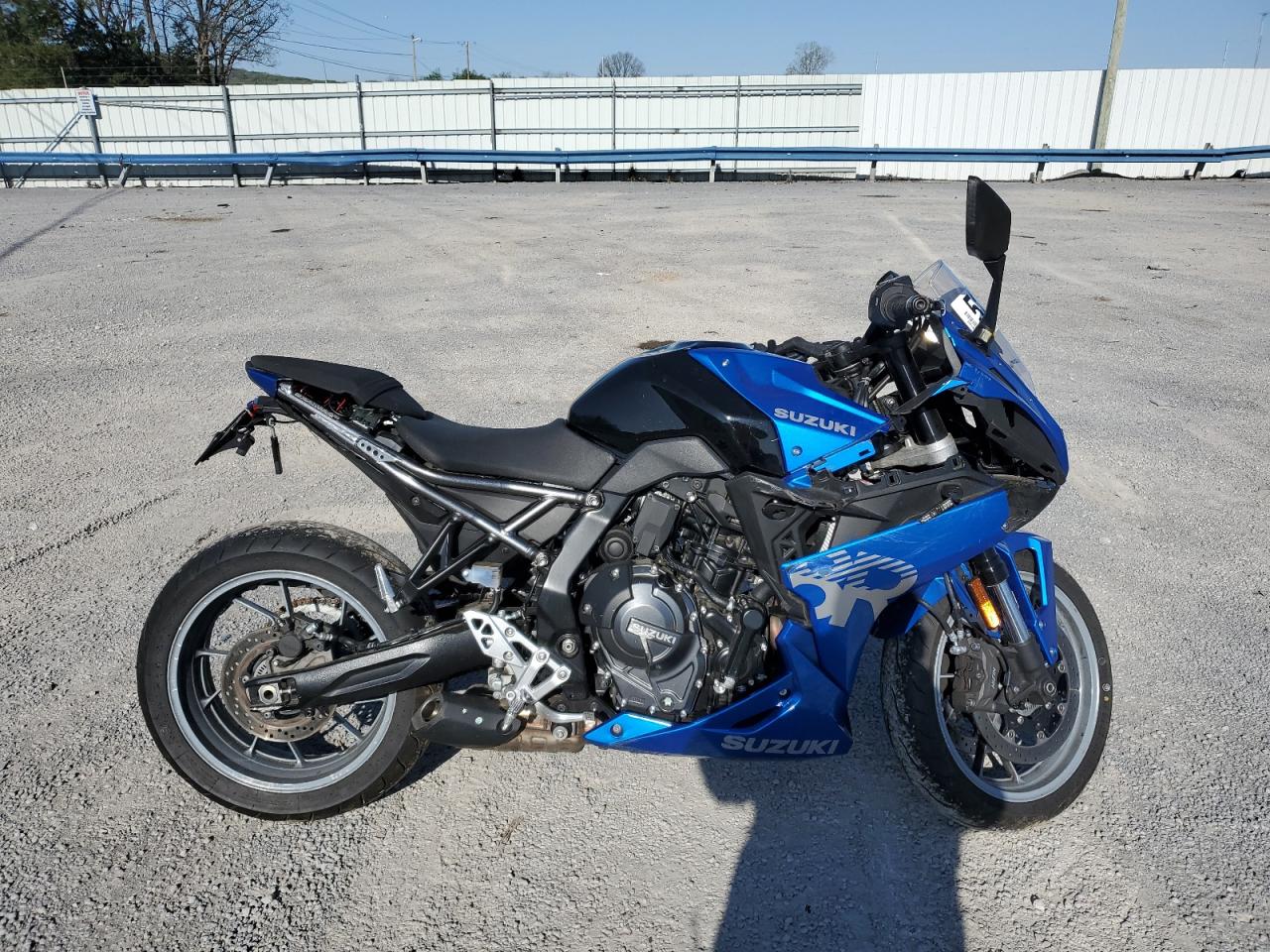 GoodThe blue SUZUKI GSX800 F 2024 shows minor dents and scratches. Overall, the exterior is in good condition. The interior appears to be in excellent condition, with no visible damage or wear and tear. The vehicle's overall state is rated as good. The wheels, lights, and glasses show no significant damage.