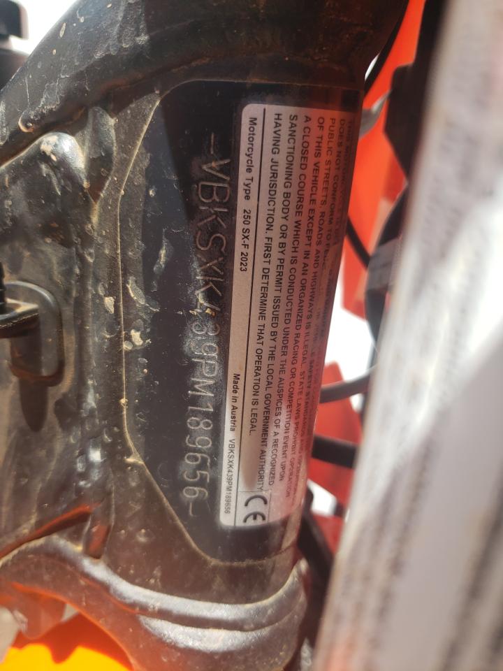 FairThe KTM 250 SX-F 2023 is an off-road motorcycle. This motorcycle shows signs of significant damage. The primary damage is present 'ALL OVER' the vehicle, with secondary damage described as 'STRIPPED'.