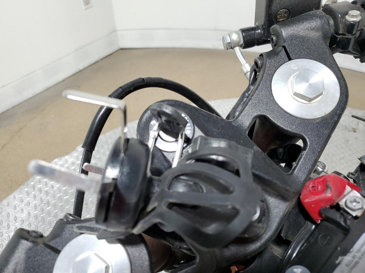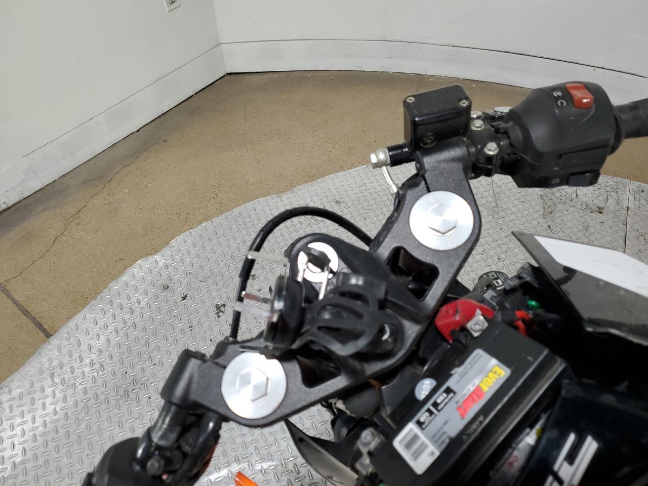 The motorcycle has sustained significant damage primarily to the front end. The front fairing, headlight assembly, and associated components are missing or severely damaged. The body panels are also damaged. The wheels and tires appear to be in acceptable condition. The interior condition is fair.