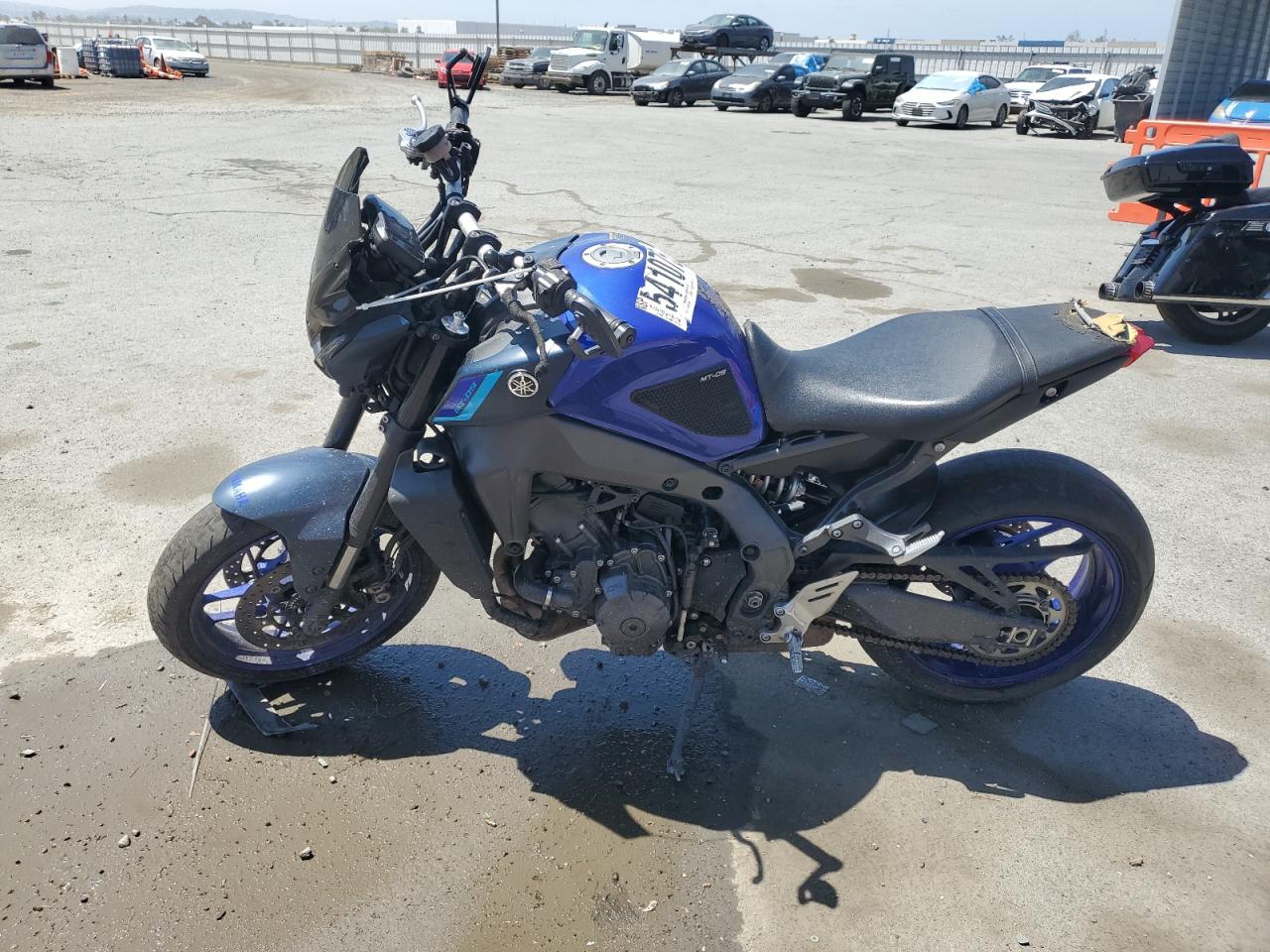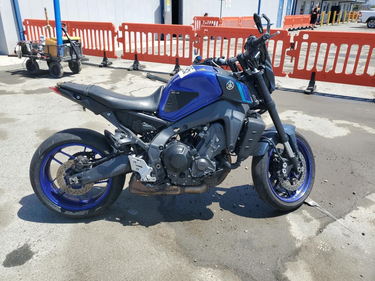 FairThe YAMAHA MT09 C 2023, a blue motorcycle, presents with rear-end and front-end damage. Exterior shows moderate damage. Interior condition appears to be in good condition. The vehicle may require repairs to be drivable. The wheels and lights are in an acceptable state.