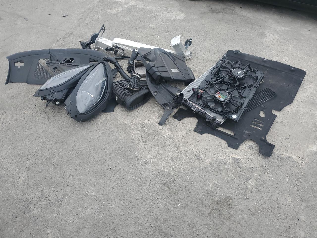 The vehicle has sustained significant front-end damage, affecting body panels, the front-end structure, and likely the lighting system. No mechanical damage is indicated, but the front-end impact suggests damage to the airbags and other safety systems.