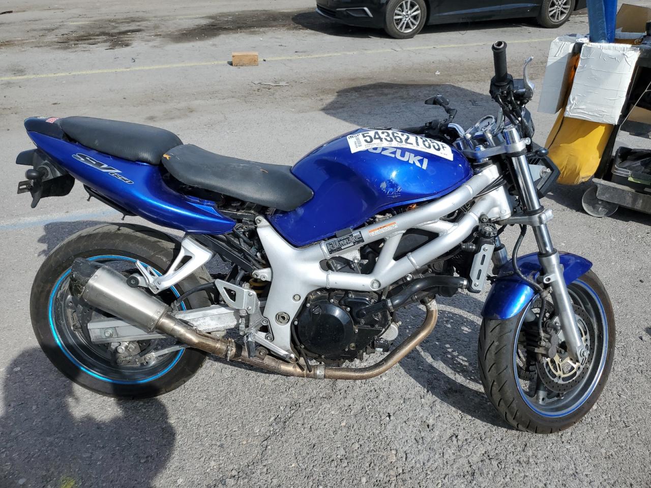 FairThe blue SUZUKI SV650 2000 suffered vandalism. The motorcycle's body panels show damage, and it requires repair but is likely drivable. There is no visible damage to the interior. The damage is considered vandalism. The lights and glasses has no visible damage.