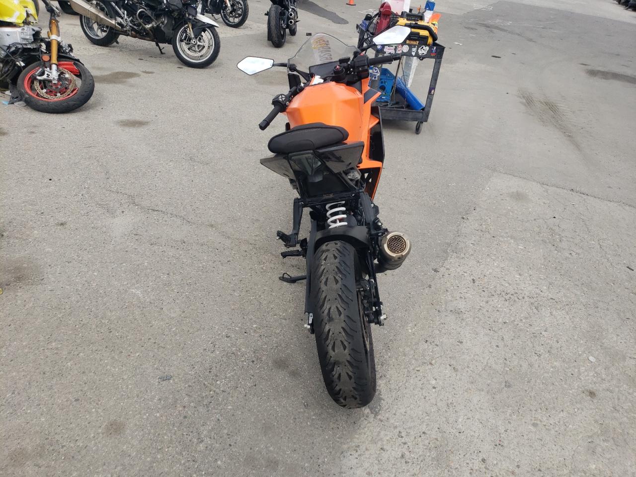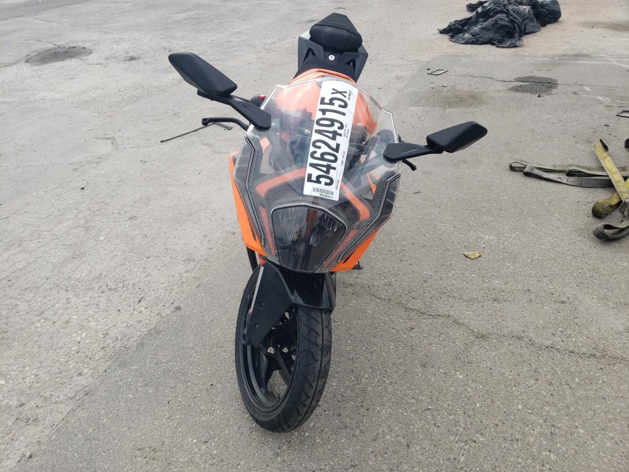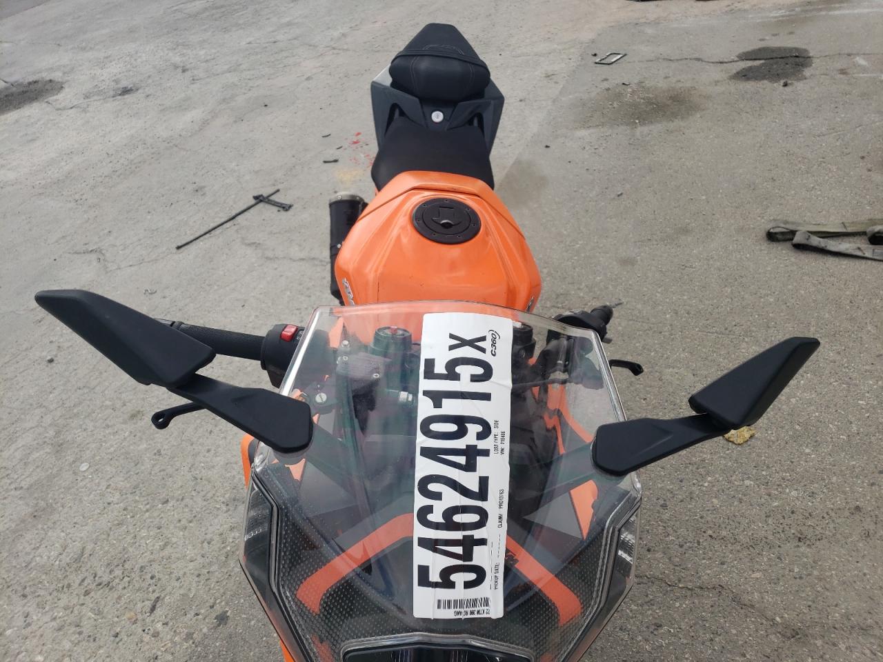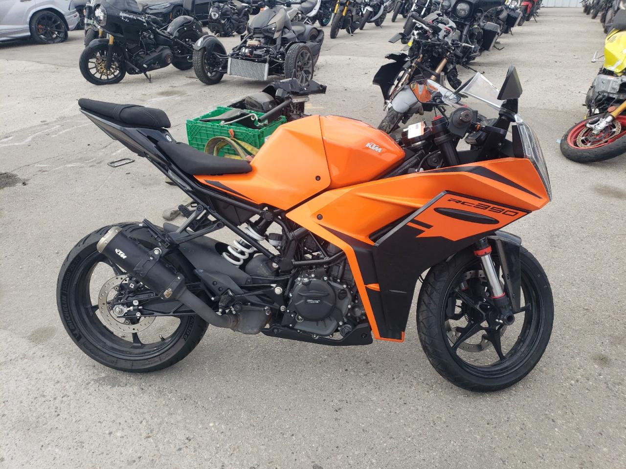 GoodThe KTM 390 RC 2022, is presented with a vibrant orange color. The primary damage is on the SIDE, with no secondary damages apparent. The motorcycle's exterior shows moderate wear and tear, indicating it may need minor repairs, such as body panels replacement, but remains drivable. The interior appears to be in very good condition, with minimal wear. Wheels, lights, and glasses are in good condition. Overall the motorcycle is in good condition.