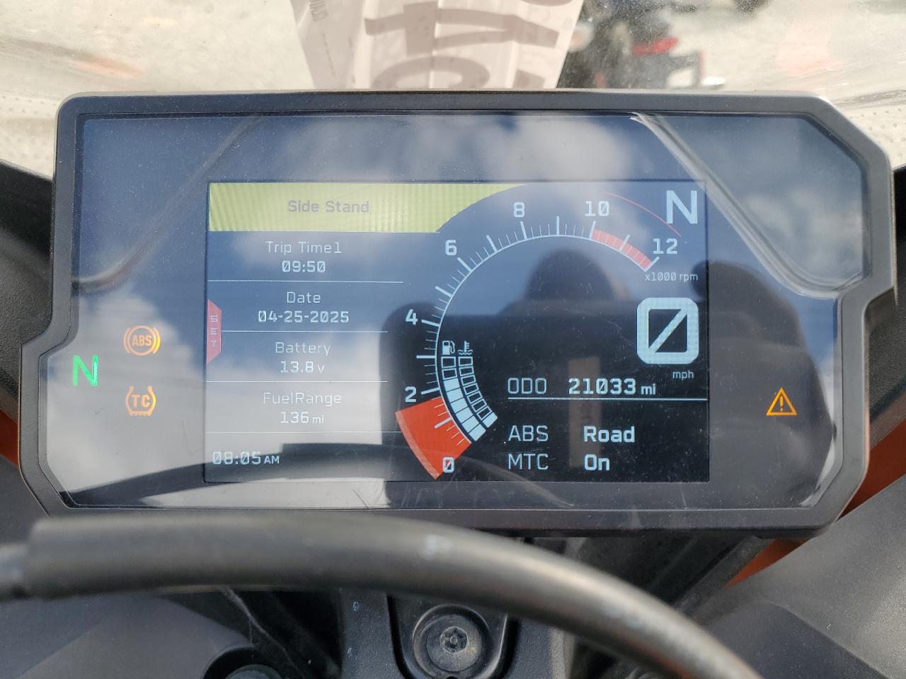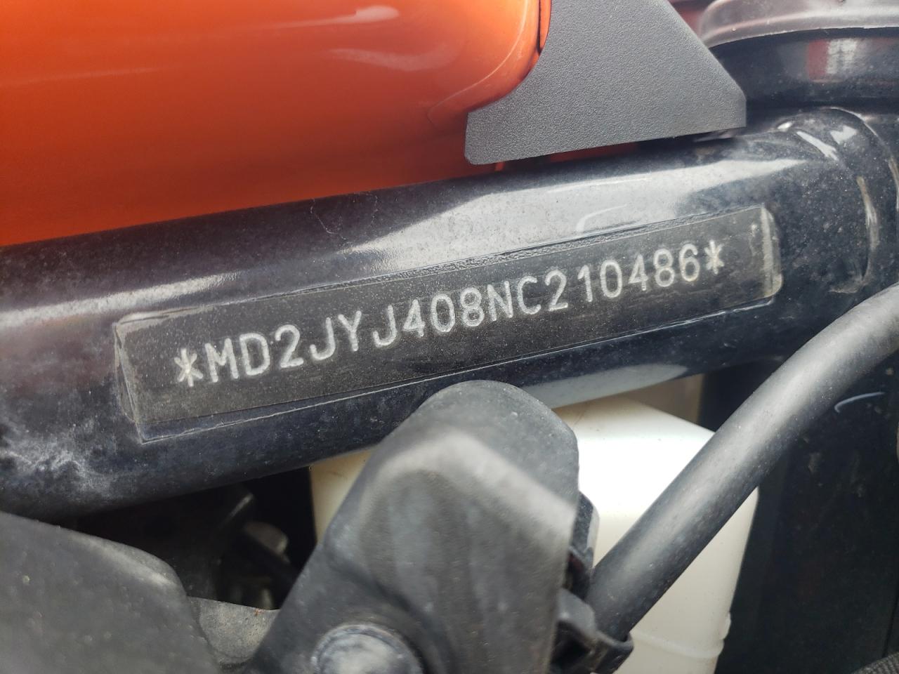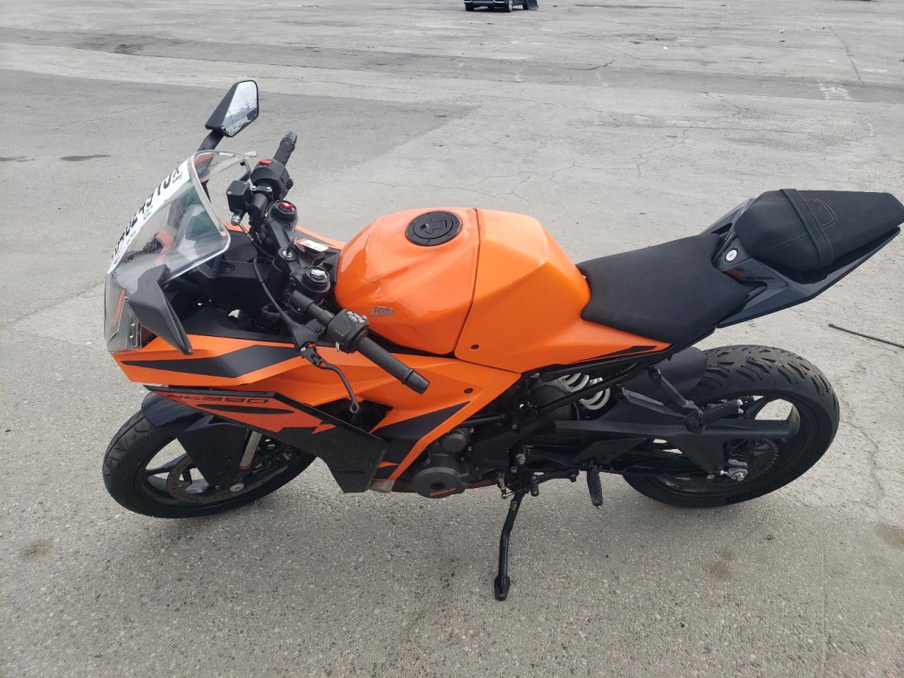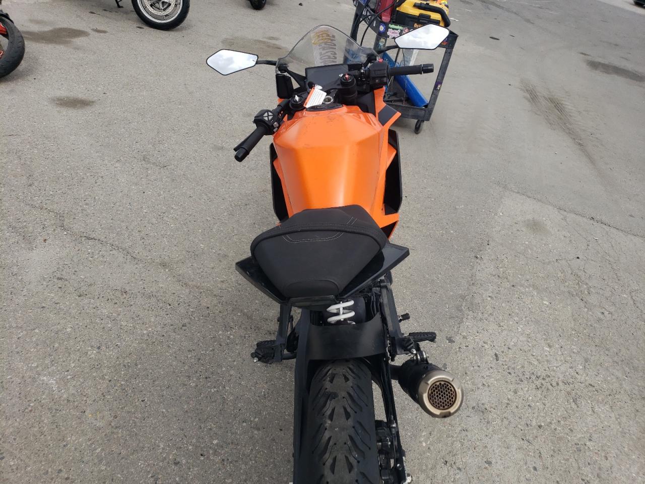 GoodThe KTM 390 RC 2022, is presented with a vibrant orange color. The primary damage is on the SIDE, with no secondary damages apparent. The motorcycle's exterior shows moderate wear and tear, indicating it may need minor repairs, such as body panels replacement, but remains drivable. The interior appears to be in very good condition, with minimal wear. Wheels, lights, and glasses are in good condition. Overall the motorcycle is in good condition.