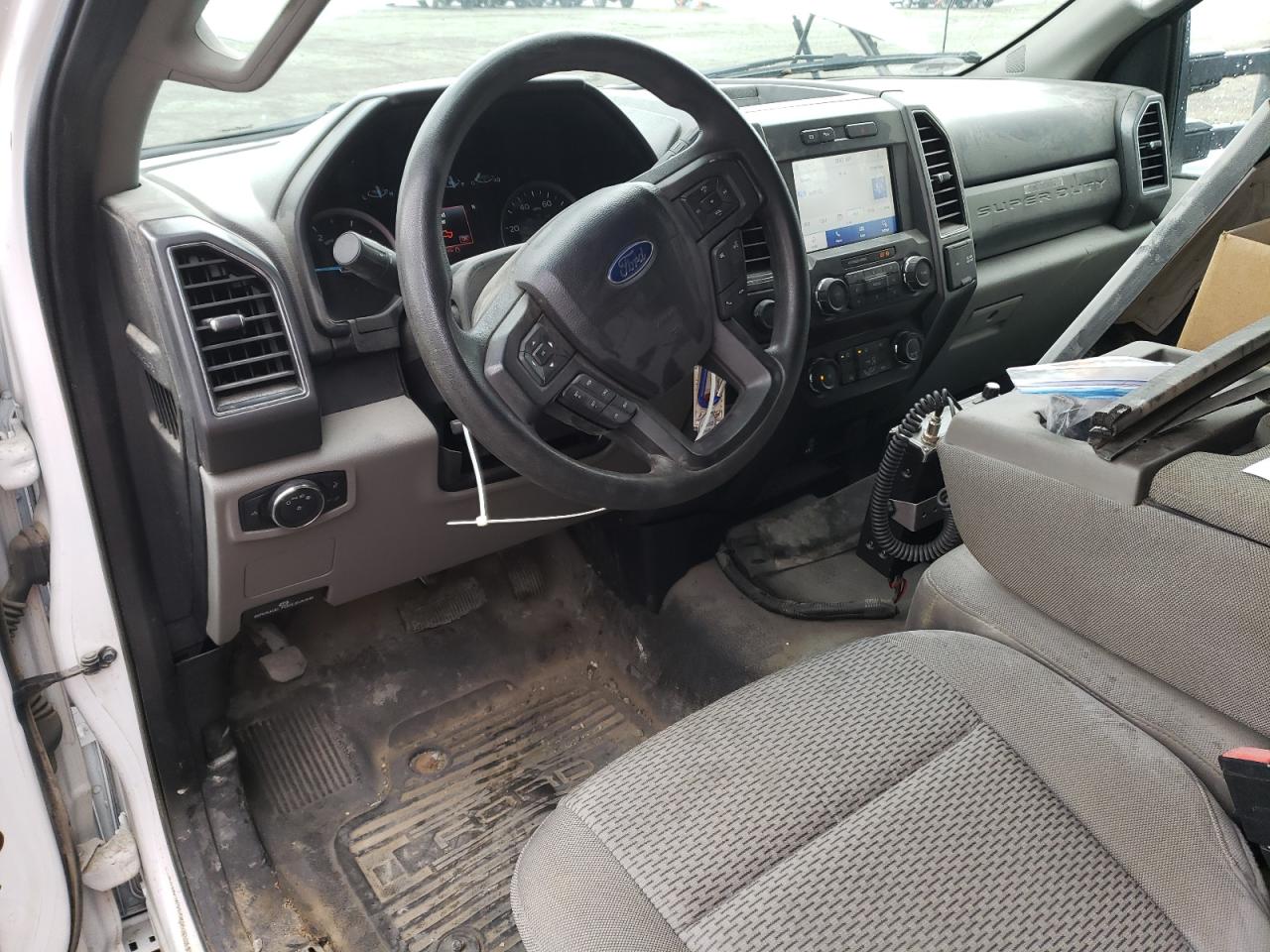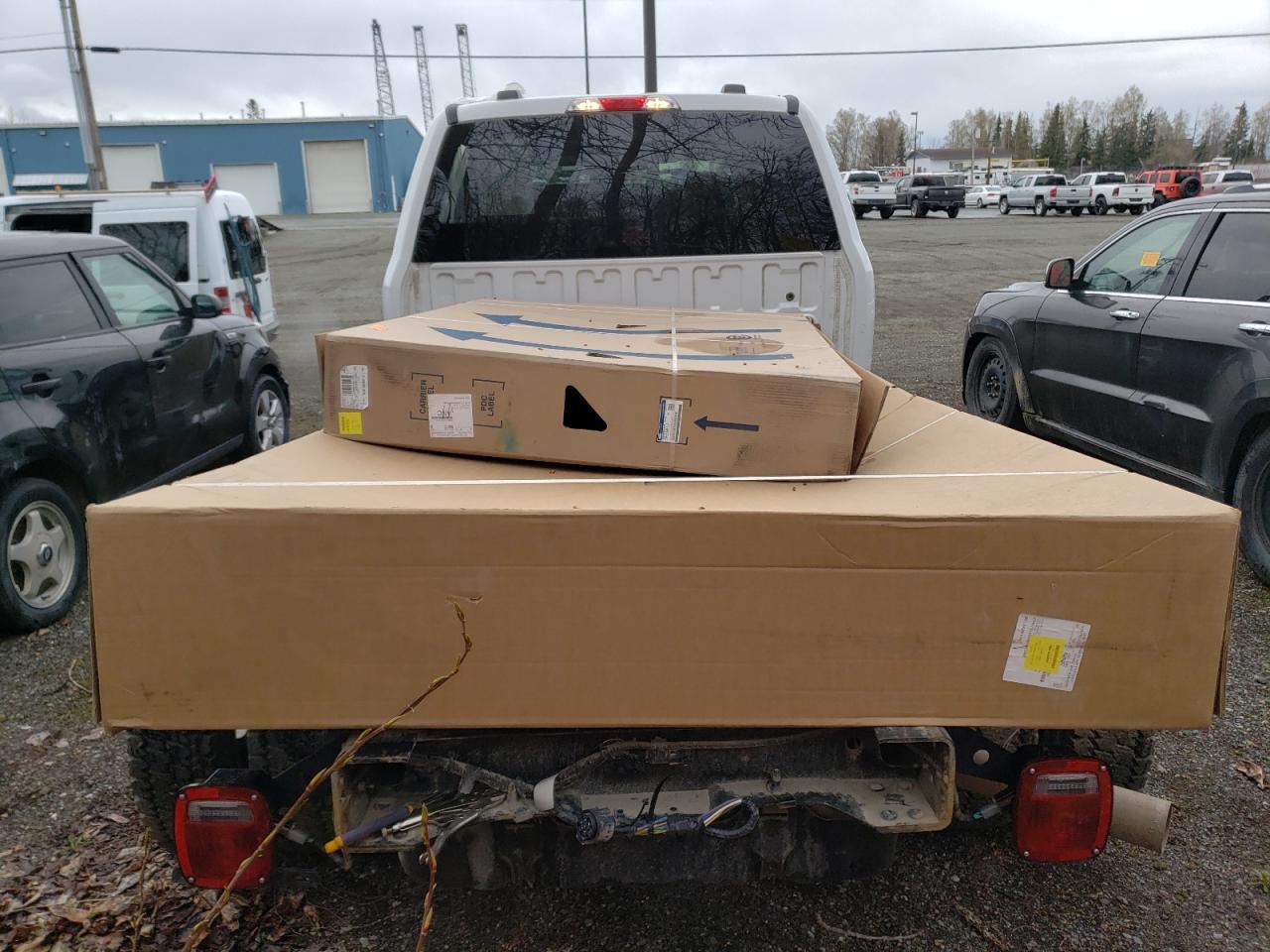 FairThe 2021 Ford F450 Super Duty is a white truck with visible damage. The vehicle's damage appears to be widespread, with damage to the body panels. The interior shows signs of wear and tear, and the truck has a run and drive verified status. This work truck has some dents and is drivable, but requires some repair.