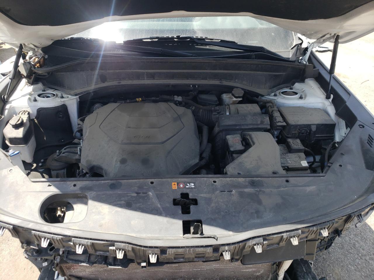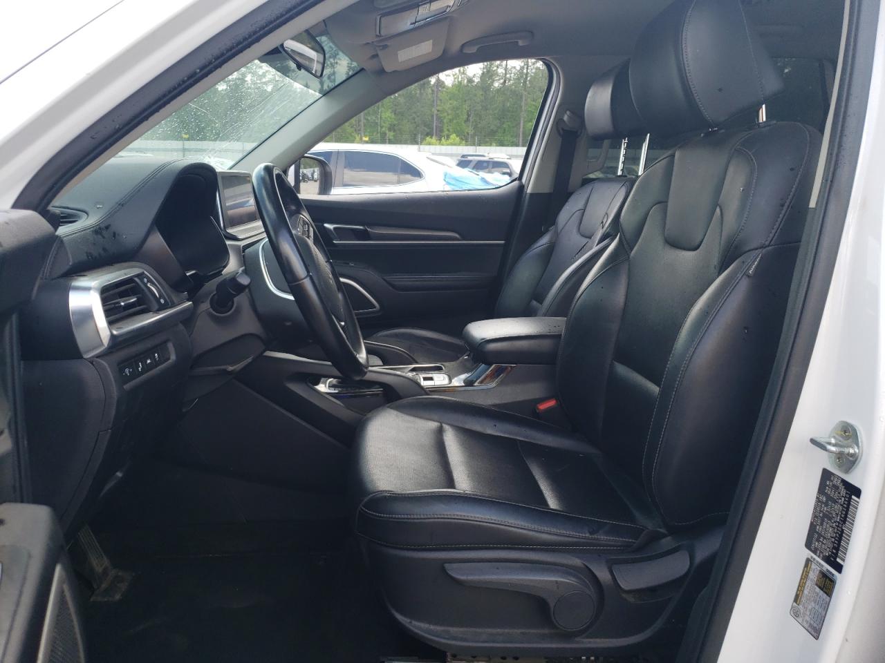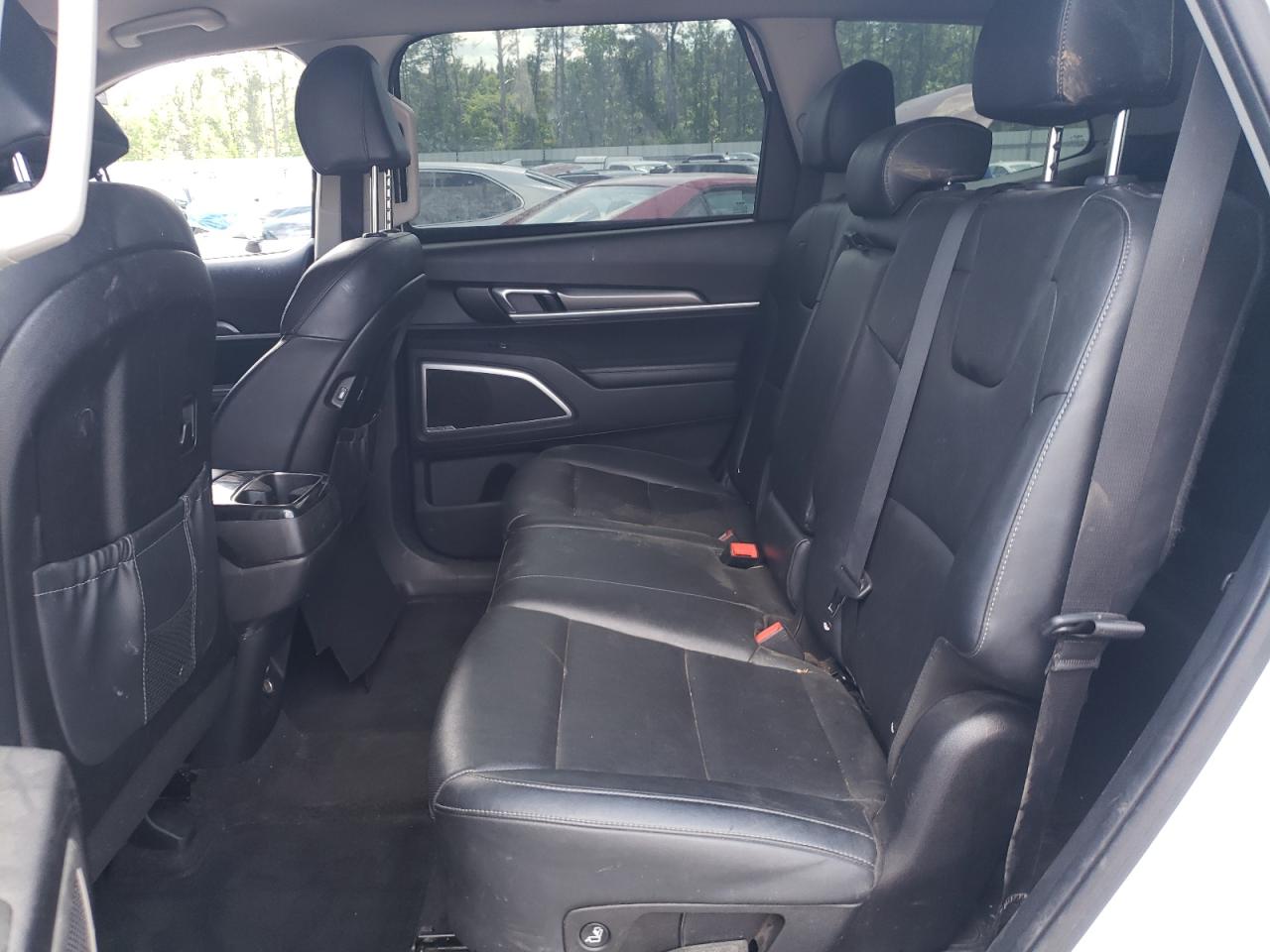 The KIA TELLURIDE has significant body damage, particularly at the front and rear. The front end is heavily damaged, and the rear also shows impact damage. Interior condition appears to be good.