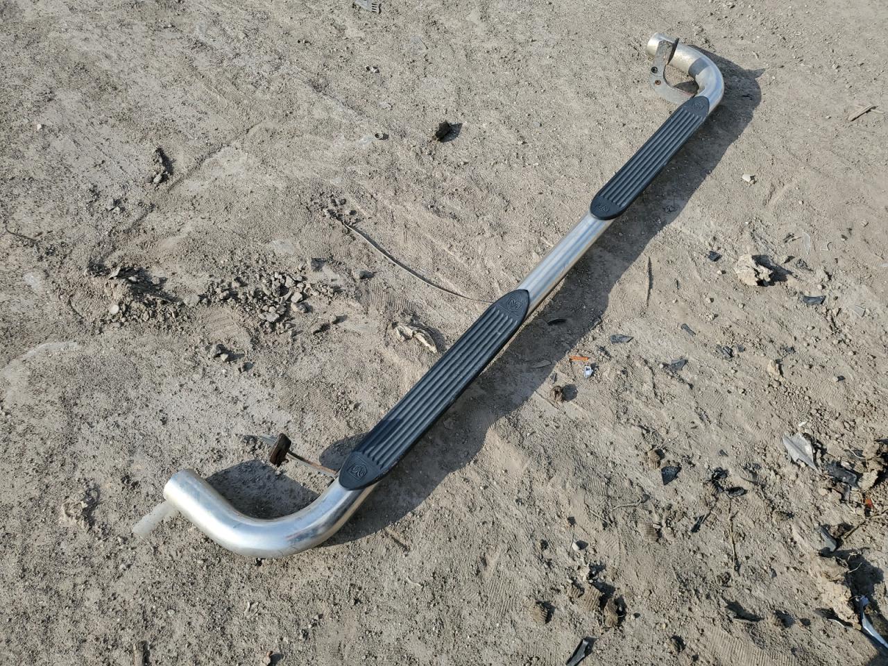 The vehicle exhibits significant damage to the rear end, along with minor dents and scratches across the body. Interior wear and tear are also noticeable. The wheels appear intact. The truck appears to be drivable but requires repairs to address the rear-end damage.