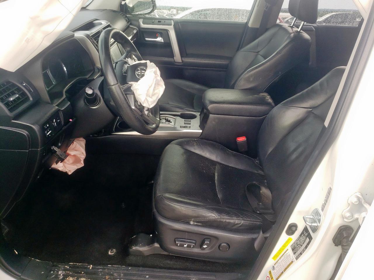 FairThe 2014 TOYOTA 4RUNNER SR is white, exhibiting significant damage primarily to the FRONT END and REAR END. The vehicle's front end shows substantial damage, including a severely damaged front bumper and quarter panel. The rear end is also heavily damaged, with visible structural issues. The interior appears to have airbag deployment and is damaged. Damage and overall state: - **Damage**: Significant front and rear end damage, airbag deployment, and potential structural issues. - **Overall Condition**: Poor due to the extensive damage. The car needs considerable repair and is likely not drivable.