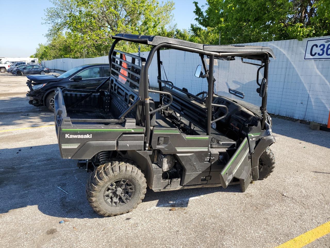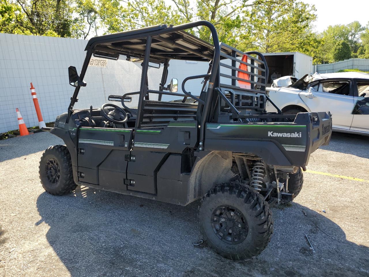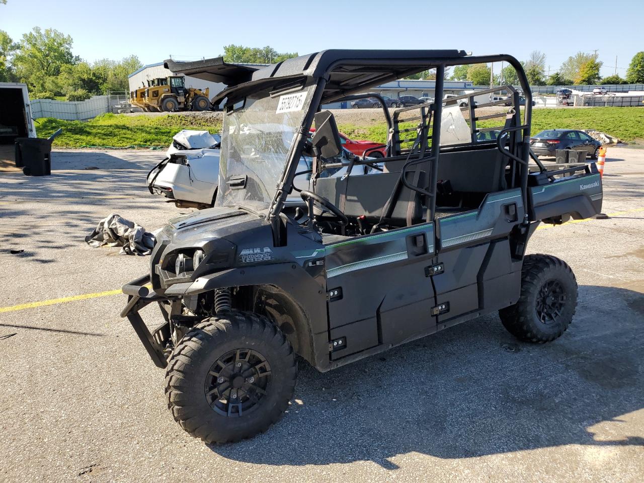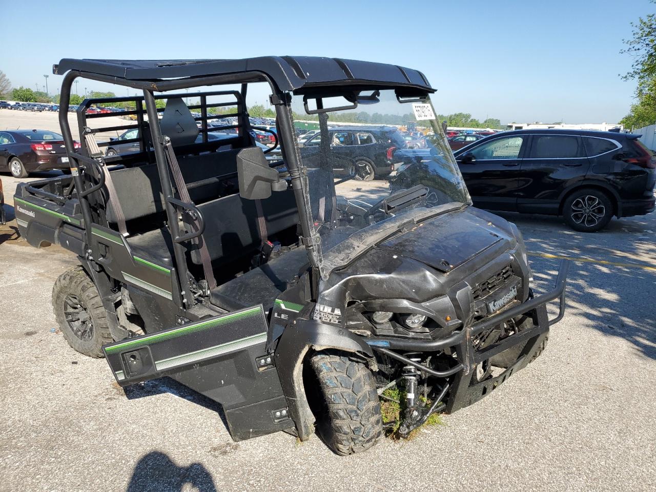 FairThe KAWASAKI KAT1000 A 2024 exhibits significant front-end and side damage. The vehicle's front end has extensive damage, including a shattered windshield and visible structural compromise. The side shows impact damage as well. The car's color is green, and it appears to have started, indicated by "Vehicle Starts." The wheels appear to be in good condition.