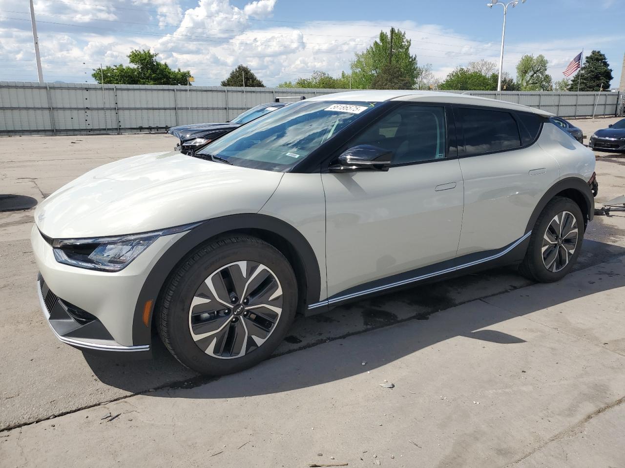 FairCream KIA EV6 LIGHT 2024 with rear-end damage. This EV6 shows signs of body damage from a rear impact, impacting body panels. Interior condition appears to be good. The car is drivable based on the 'Run & Drive Verified' status. Damages include rear-end impact, affecting the vehicle's body. Wheels and glass appears to be in good condition with no visible damages. The vehicle is drivable.