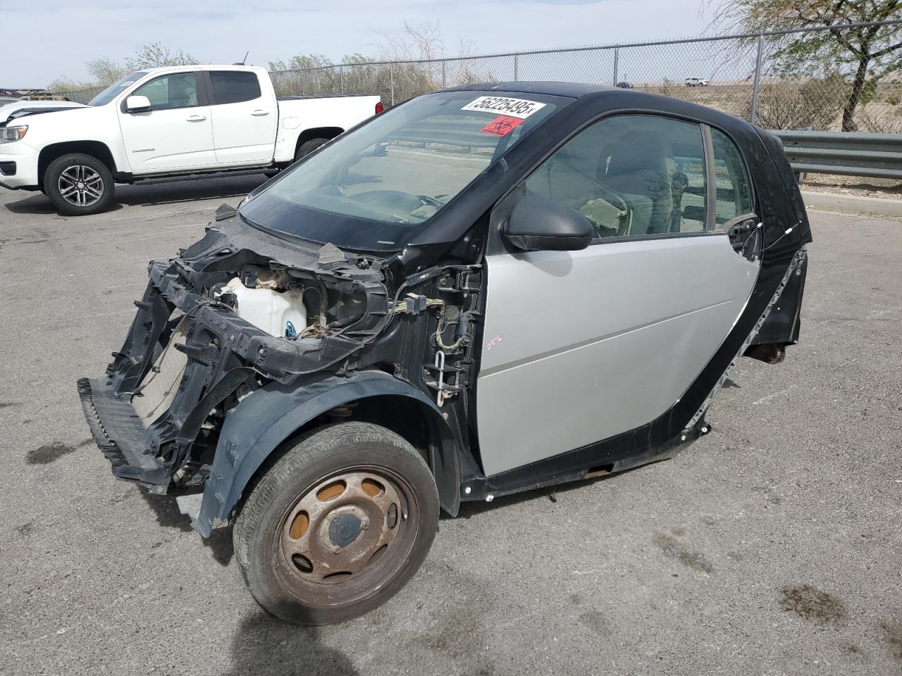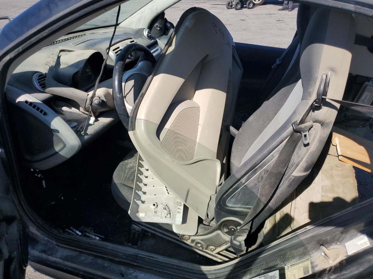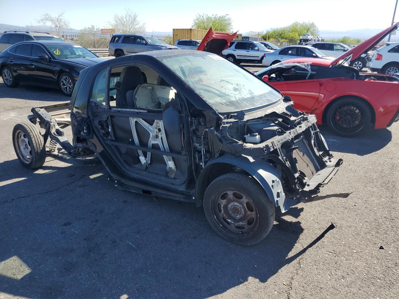 This SMART FORTWO PUR 2013, black in color, shows extensive damage. The body panels are severely damaged, and the car appears to be stripped of various components. The wheels are present but appear to be in poor condition. The lights and glasses are likely damaged or missing. The interior shows moderate damage, the car isn't drivable. The damage is widespread, affecting multiple areas of the vehicle. The car's current state suggests it requires considerable repair.