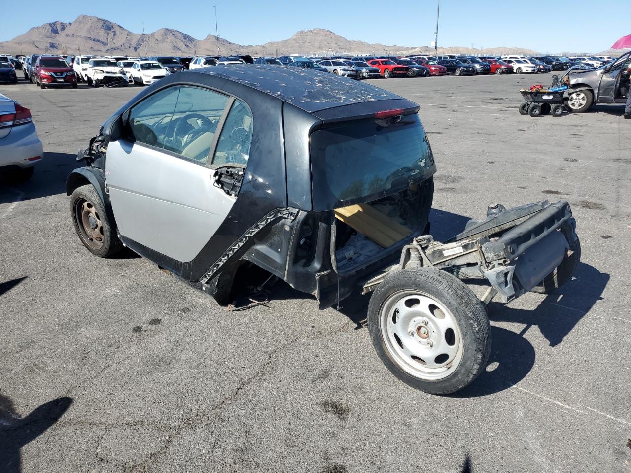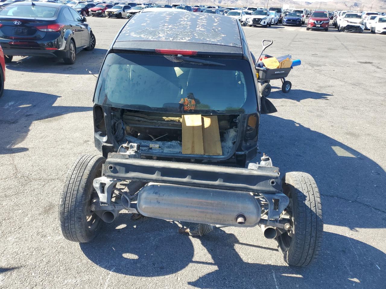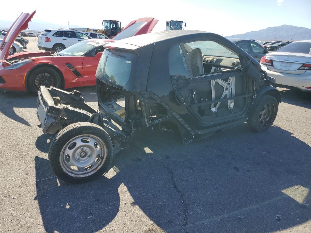 This SMART FORTWO PUR 2013, black in color, shows extensive damage. The body panels are severely damaged, and the car appears to be stripped of various components. The wheels are present but appear to be in poor condition. The lights and glasses are likely damaged or missing. The interior shows moderate damage, the car isn't drivable. The damage is widespread, affecting multiple areas of the vehicle. The car's current state suggests it requires considerable repair.