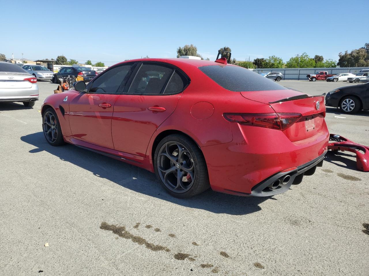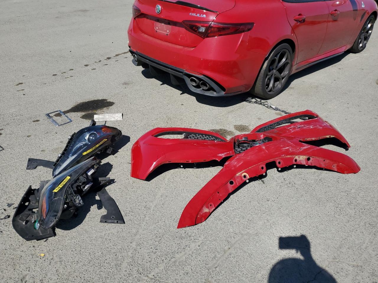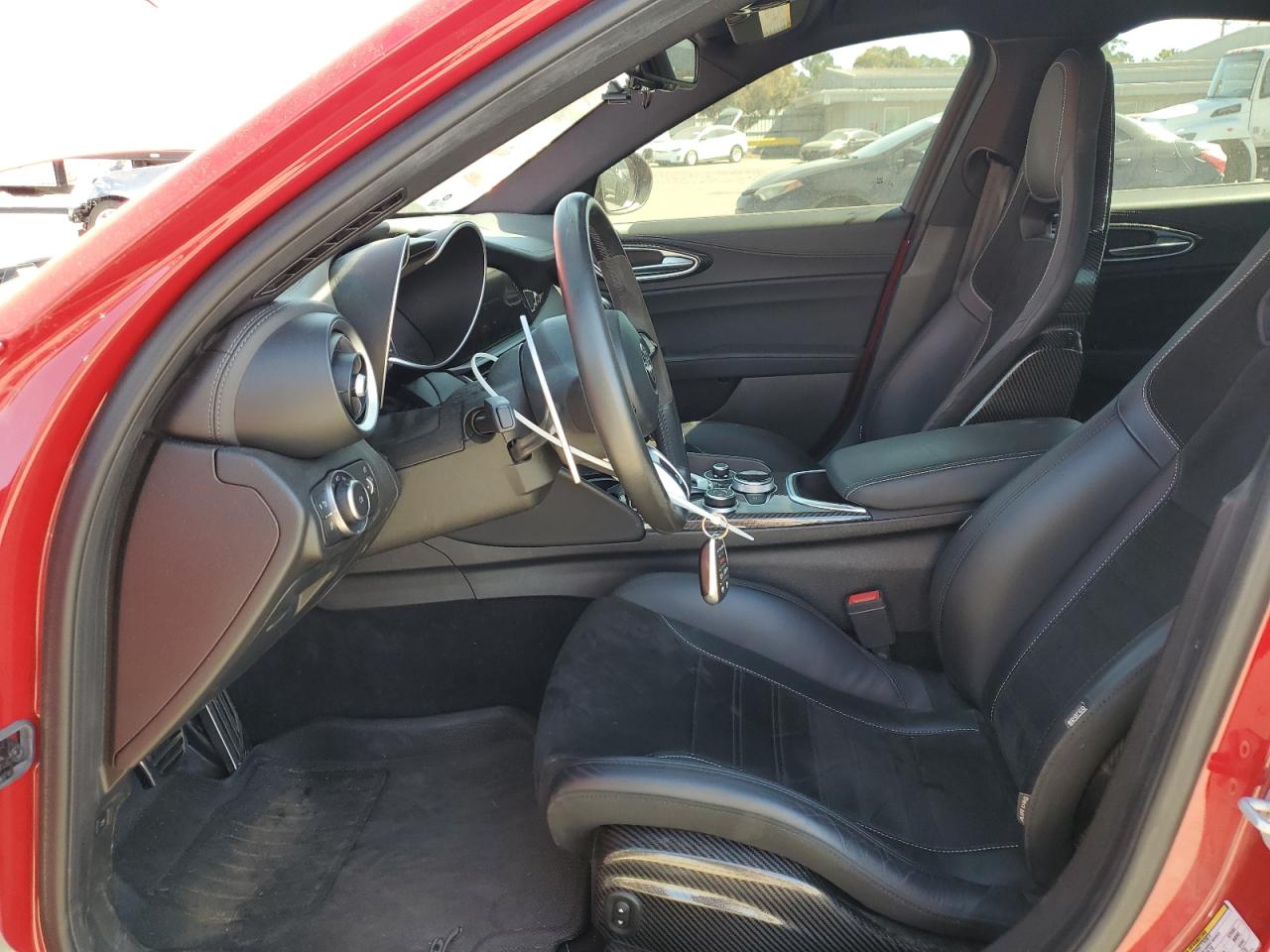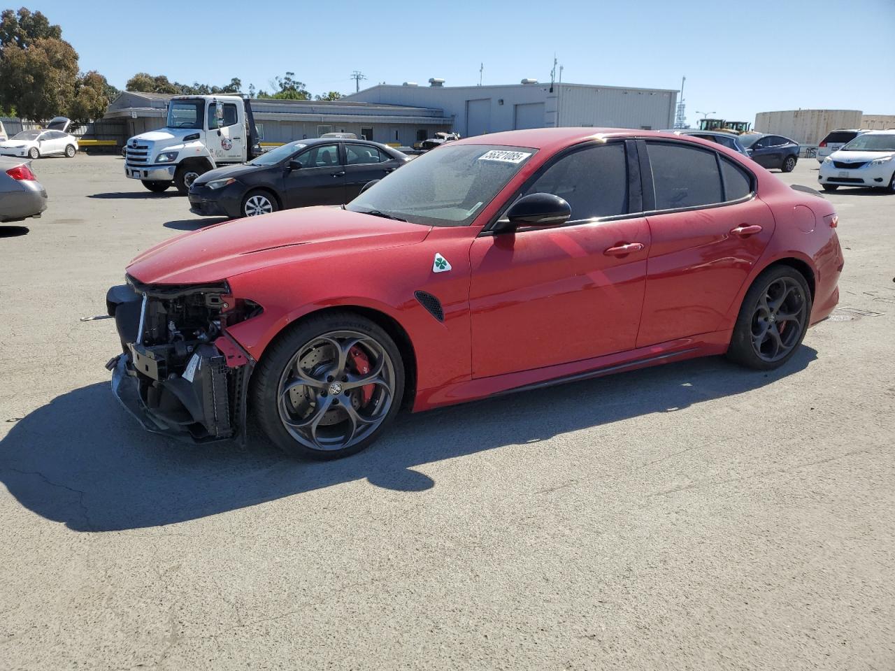 FairThis 2022 Alfa Romeo Giulia Quadrifoglio is presented with front-end damage. The vehicle is red and has a Run & Drive Verified start code. The exterior exhibits moderate damage, primarily concentrated at the front. The interior appears to be in good condition. This car is a potential project or salvage option.