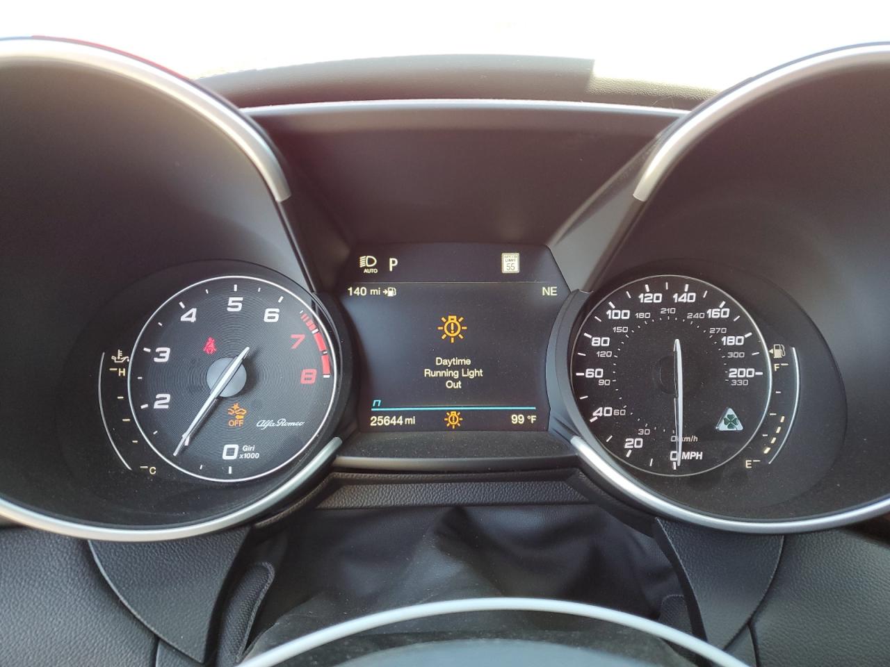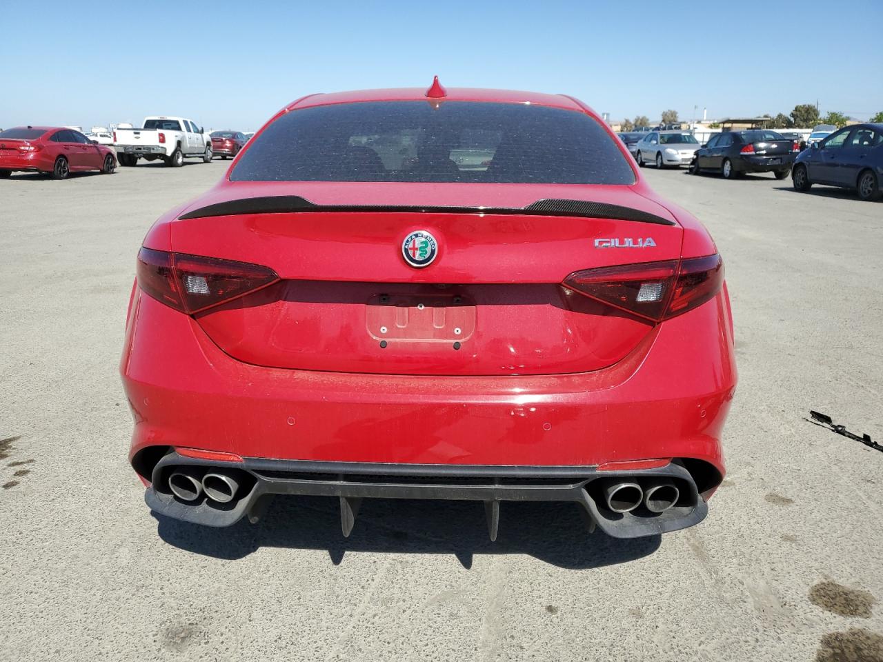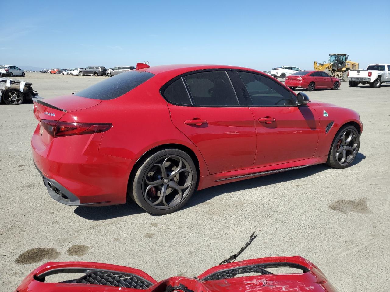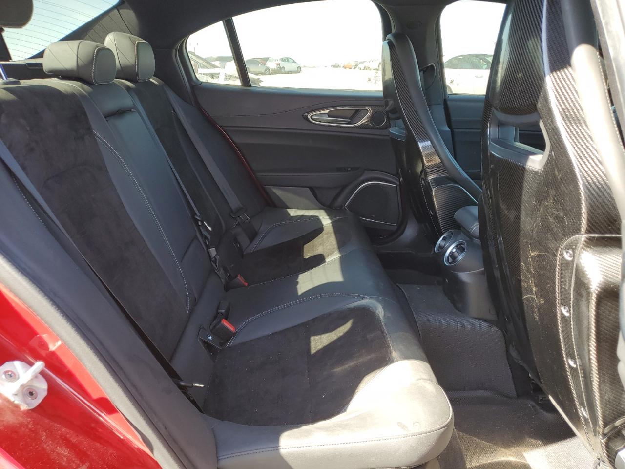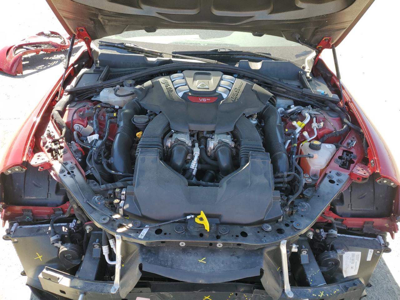 FairThis 2022 Alfa Romeo Giulia Quadrifoglio is presented with front-end damage. The vehicle is red and has a Run & Drive Verified start code. The exterior exhibits moderate damage, primarily concentrated at the front. The interior appears to be in good condition. This car is a potential project or salvage option.