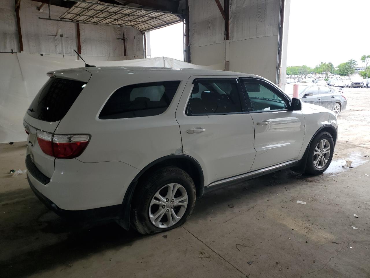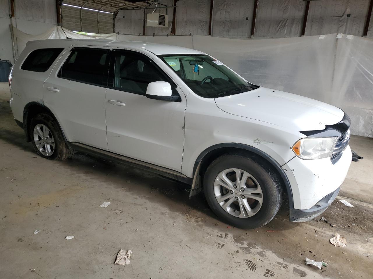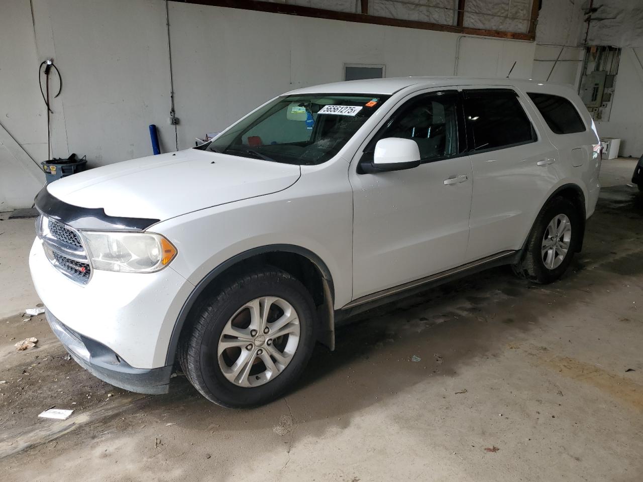 This is a white 2013 Dodge Durango SX. The primary damage is categorized as BIOHAZARD/CHEMICAL, with secondary damage described as MINOR DENT/SCRATCHES. The vehicle's interior appears to be in rough shape, with visible debris and potential biohazard contamination.