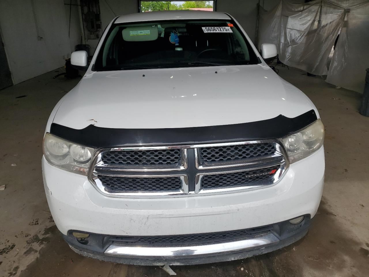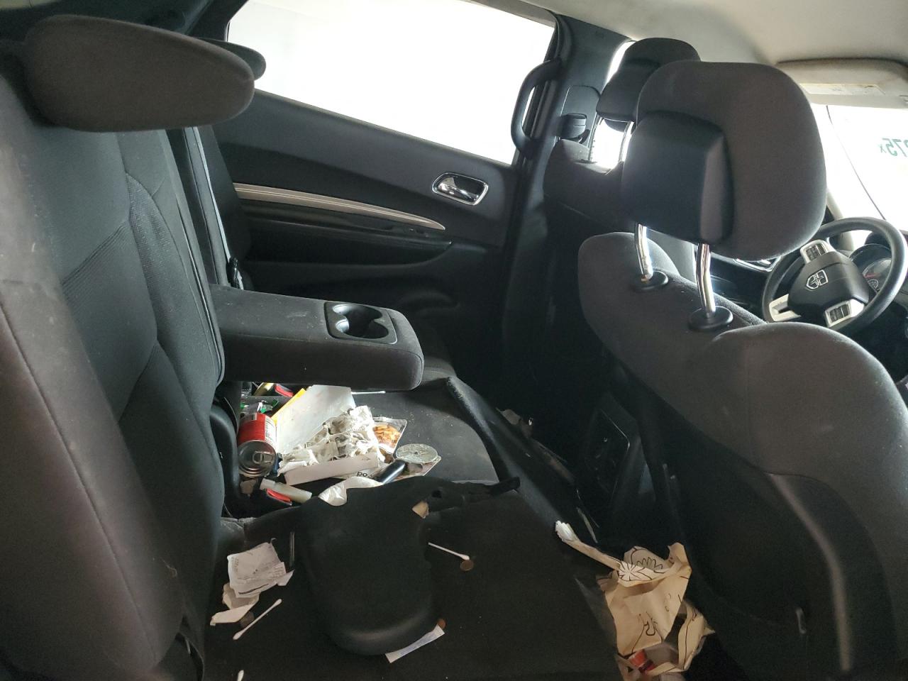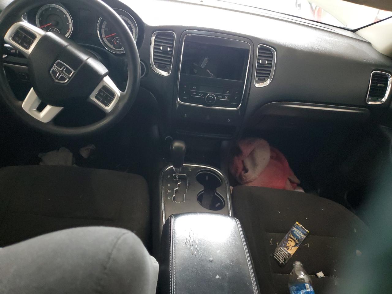 This is a white 2013 Dodge Durango SX. The primary damage is categorized as BIOHAZARD/CHEMICAL, with secondary damage described as MINOR DENT/SCRATCHES. The vehicle's interior appears to be in rough shape, with visible debris and potential biohazard contamination.