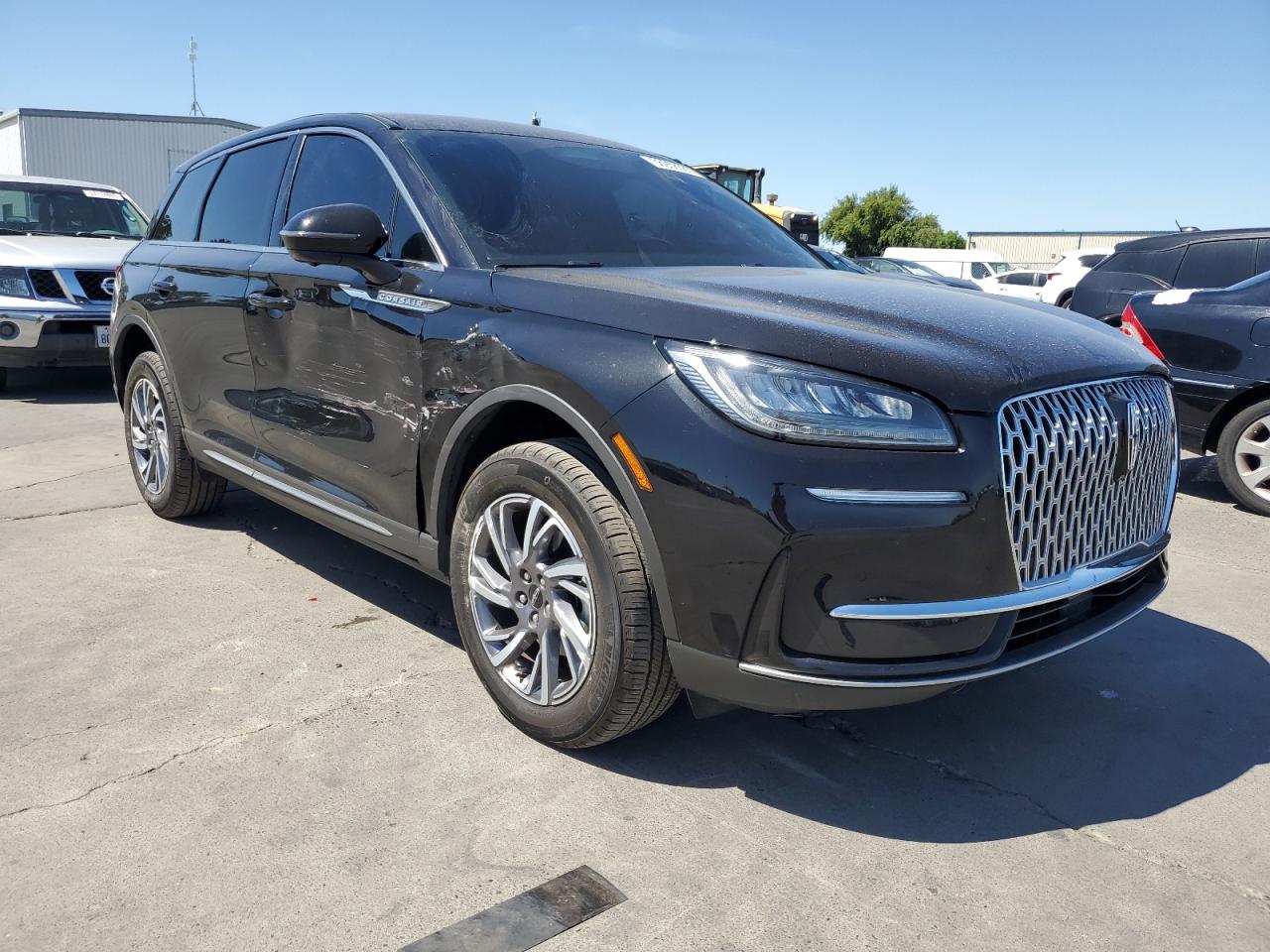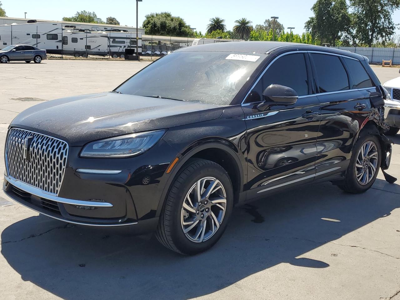 FairThis 2023 LINCOLN CORSAIR, is a black SUV with significant rear and side damage, making it a "Fair" state. The primary damage is rear-end collision damage, with secondary side impact. The car appears to be drivable with visible body panel damage and scratches. Wheels, lights, and glass appear to be intact, and the interior is in "Very Good" condition. The car start code is Run & Drive Verified.