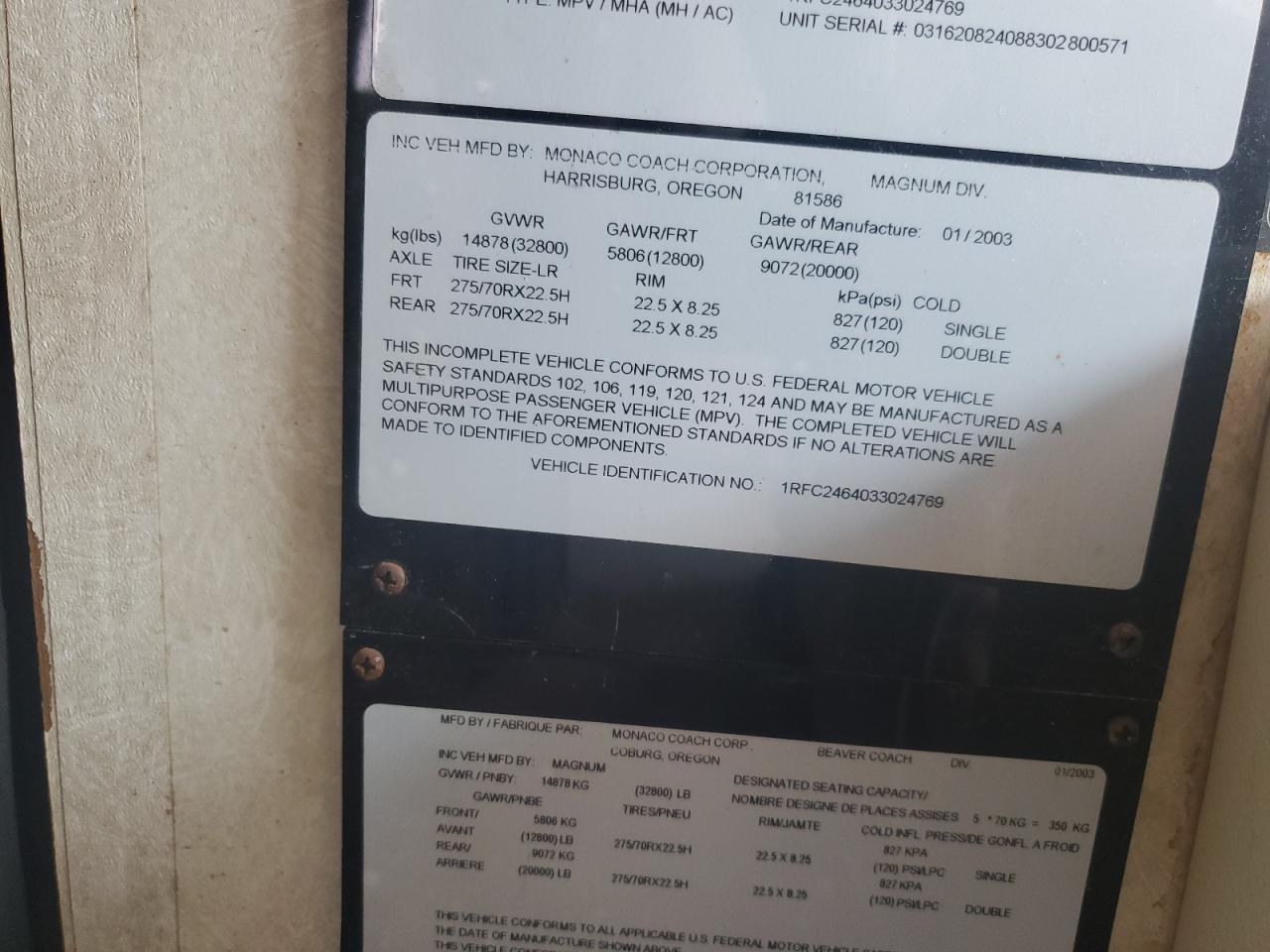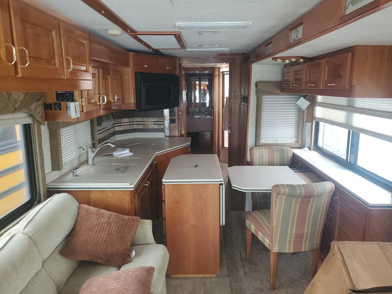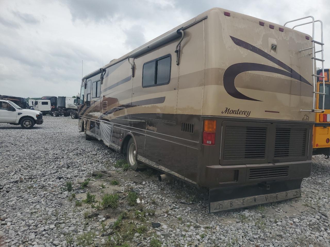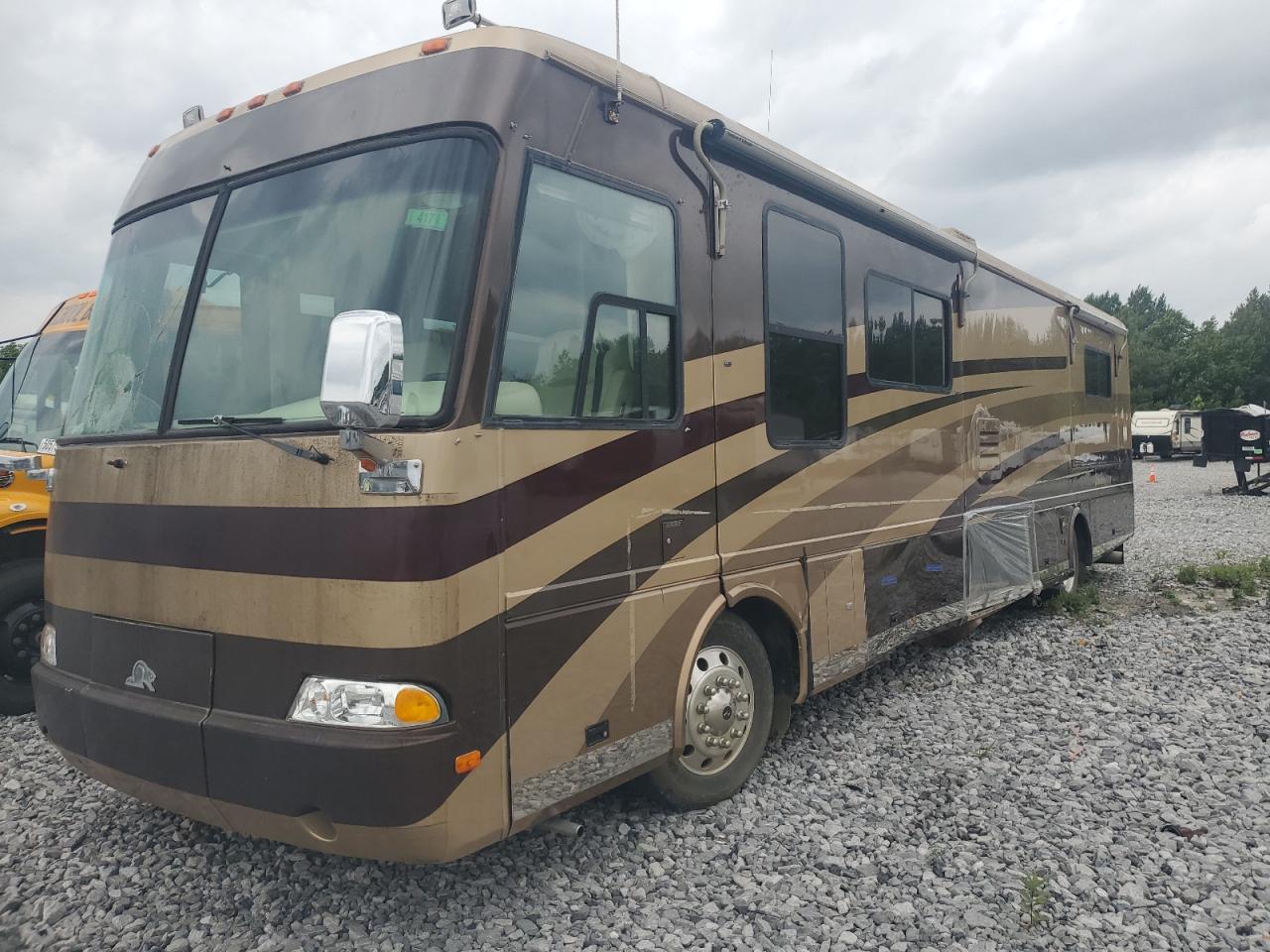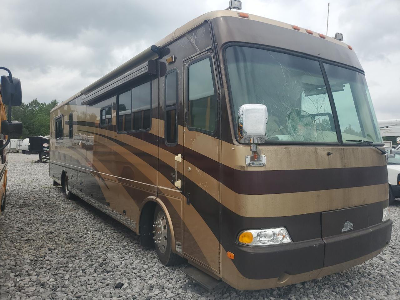 FairThe 2003 ROADMASTER RAIL MAGNUM B-S is a two-tone motorhome with primary body damage and secondary side damage. It is verified as run and drive. The motorhome shows signs of wear and tear, with visible damage to the exterior. The interior condition appears to be better than the exterior, with moderate wear and tear. Overall, the vehicle requires some repair.