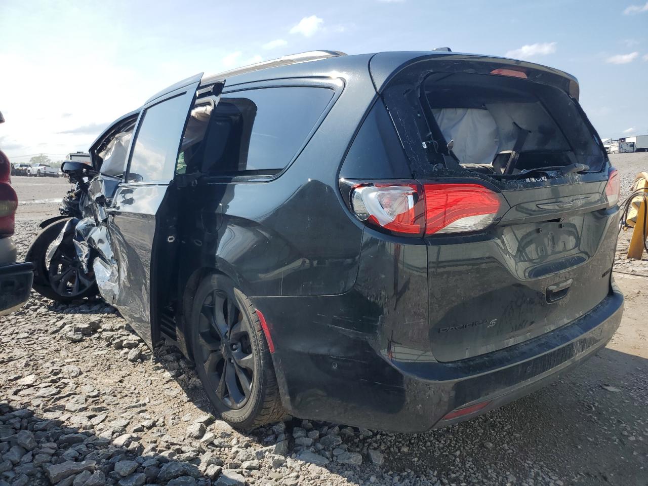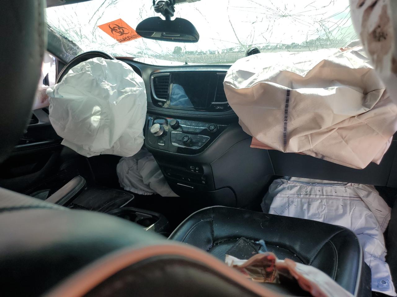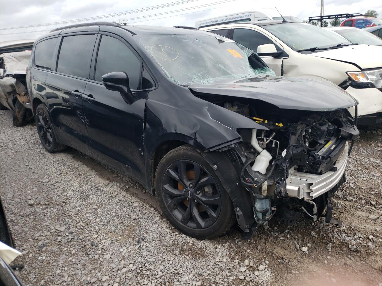 PoorThis is a heavily damaged 2018 CHRYSLER PACIFICA L. The black minivan exhibits significant collision damage. The front end, including the hood, bumper, and headlights, is severely compromised. The windshield is completely shattered, and the roofline shows visible distortion. Both front and rear doors on the passenger side are damaged. Interior airbags have deployed, and the dashboard components are affected. The wheels appear intact but may have suspension damage. The lights have visible damage and the glasses are broken.
