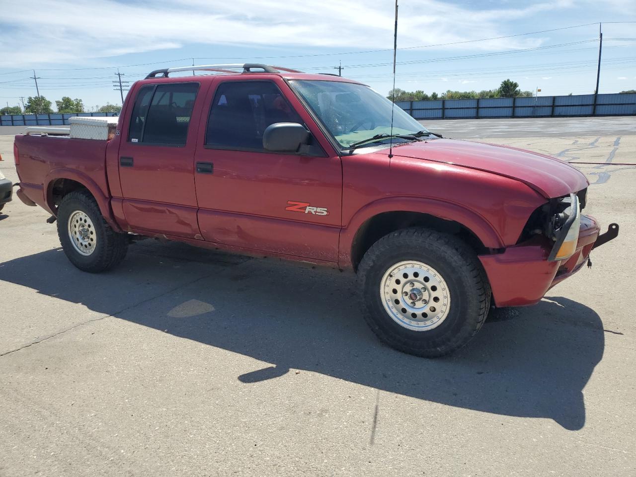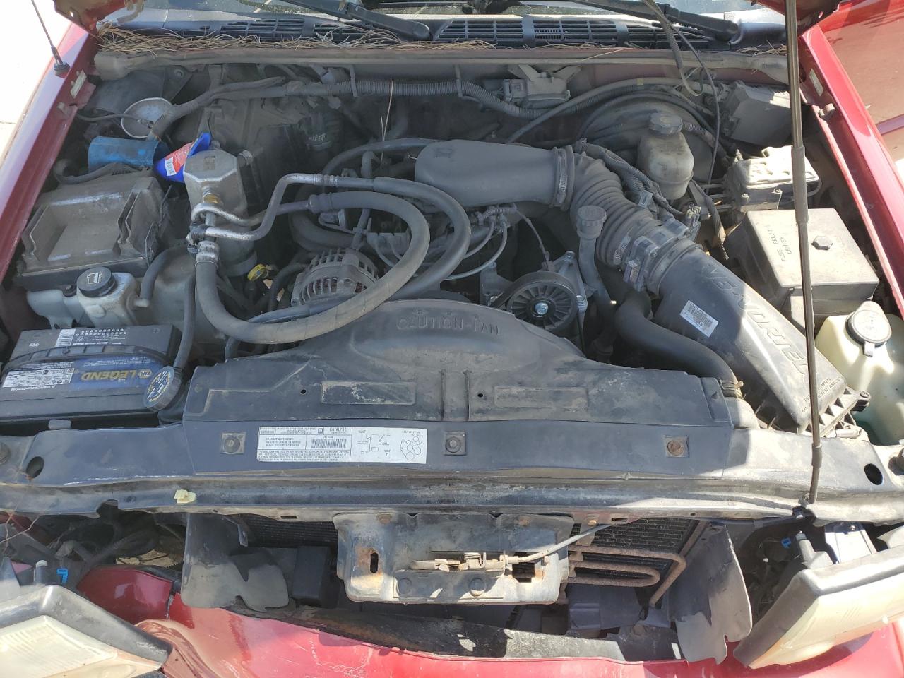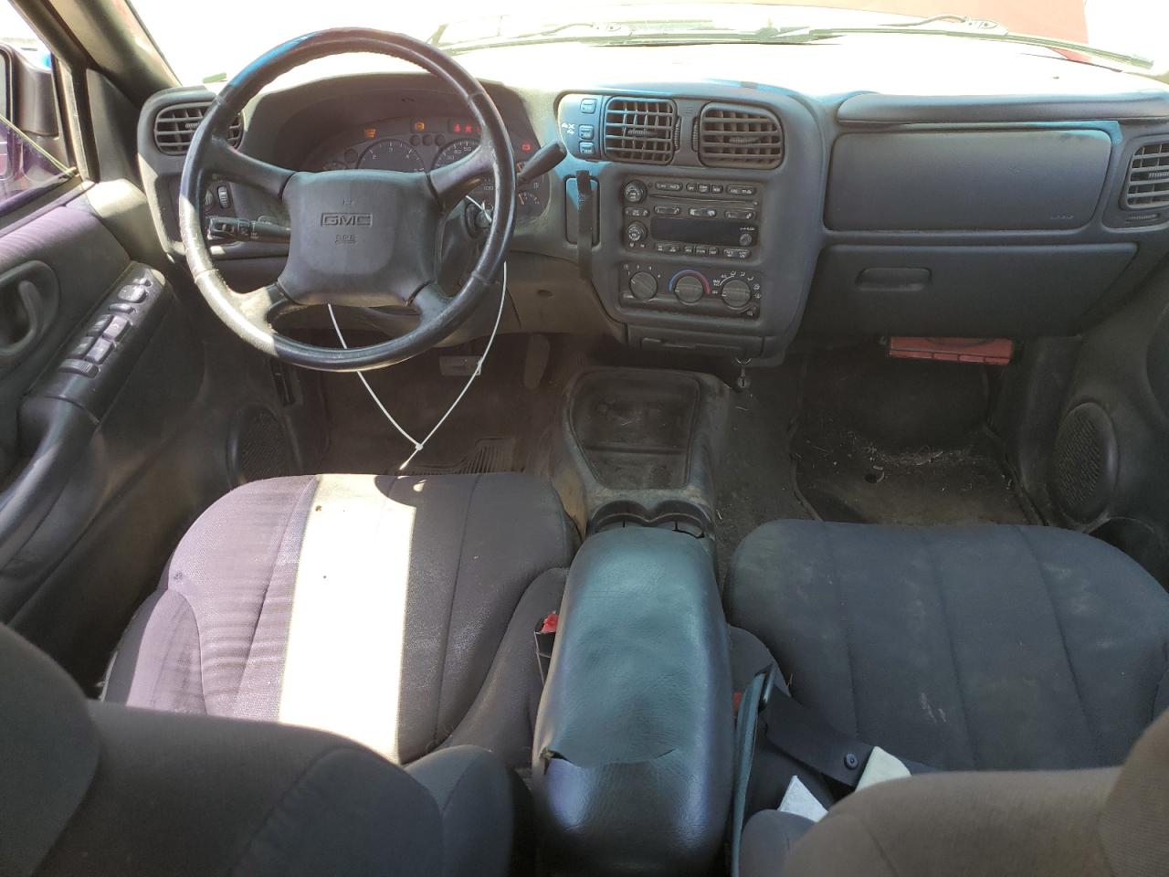 FairThe 2003 GMC Sonoma is a burgundy pickup truck with significant front-end damage, making it a salvage title candidate. The vehicle starts and runs, but has noticeable damage to the body panels and undercarriage. The interior shows wear and tear. The vehicle's condition suggests it needs considerable repairs.