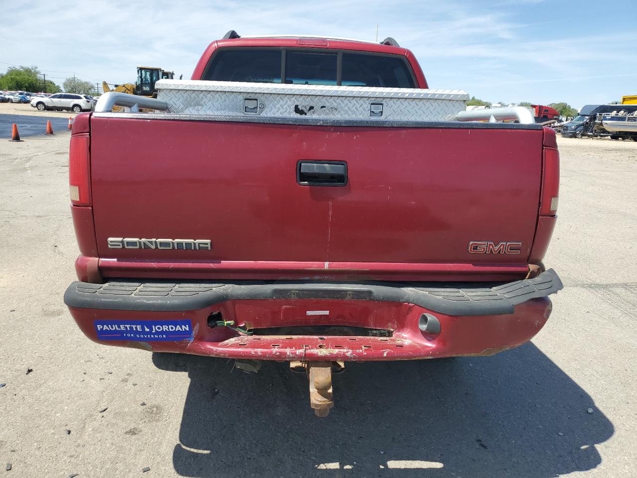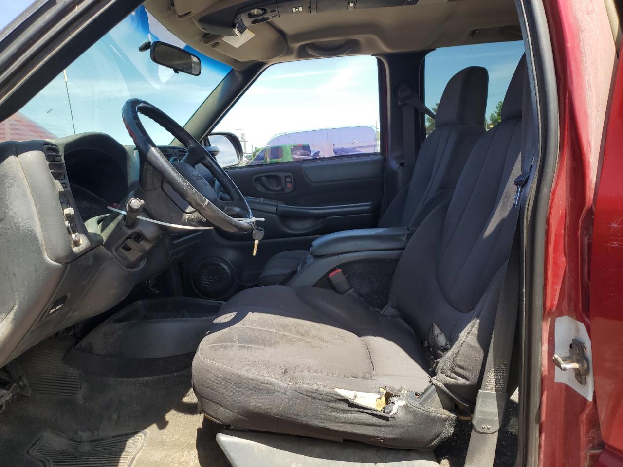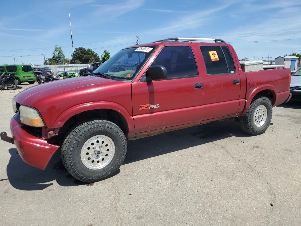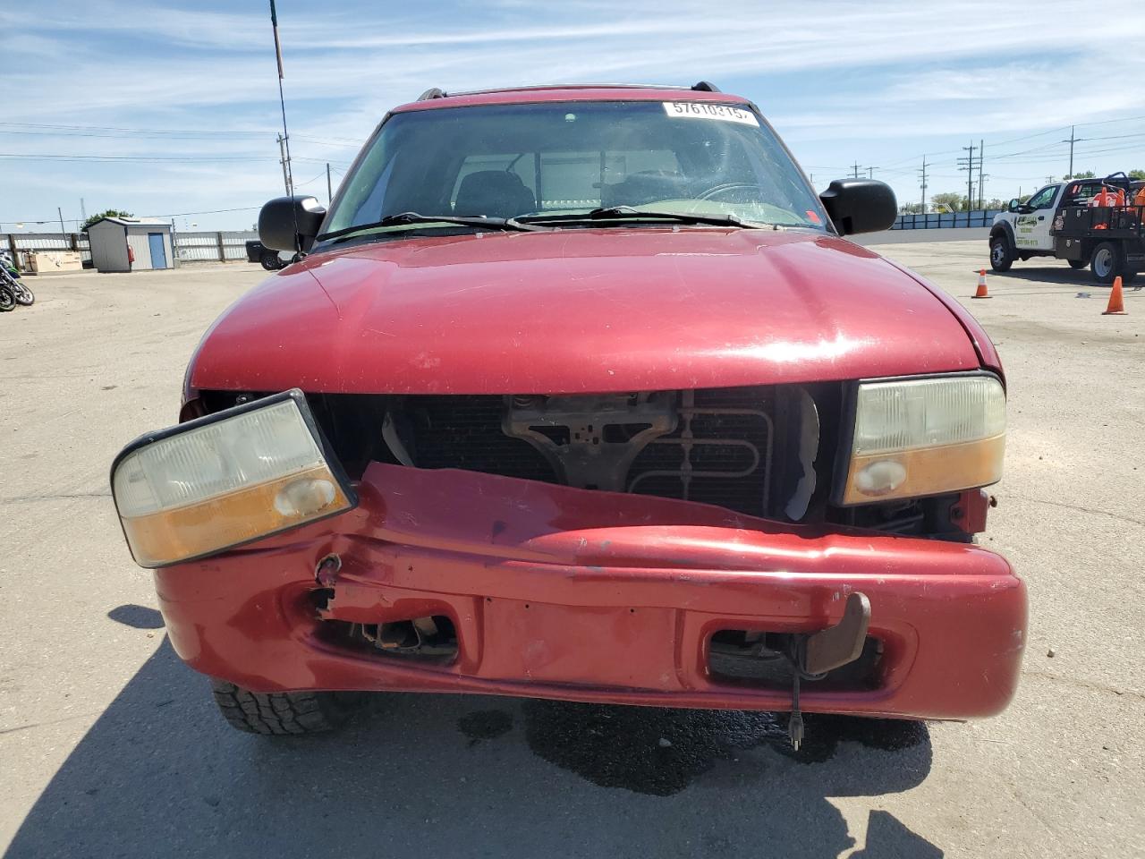 FairThe 2003 GMC Sonoma is a burgundy pickup truck with significant front-end damage, making it a salvage title candidate. The vehicle starts and runs, but has noticeable damage to the body panels and undercarriage. The interior shows wear and tear. The vehicle's condition suggests it needs considerable repairs.