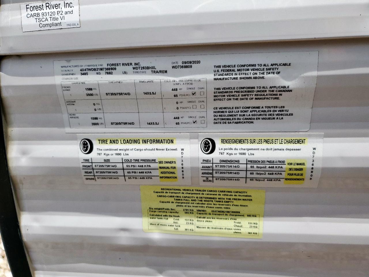 FairThe 2021 WILDWOOD is white. Primary damage is hail, with no secondary damage. The vehicle's body has damage. The interior appears to be in good condition. The car is drivable, but with some body damage. No airbag damage is visible.